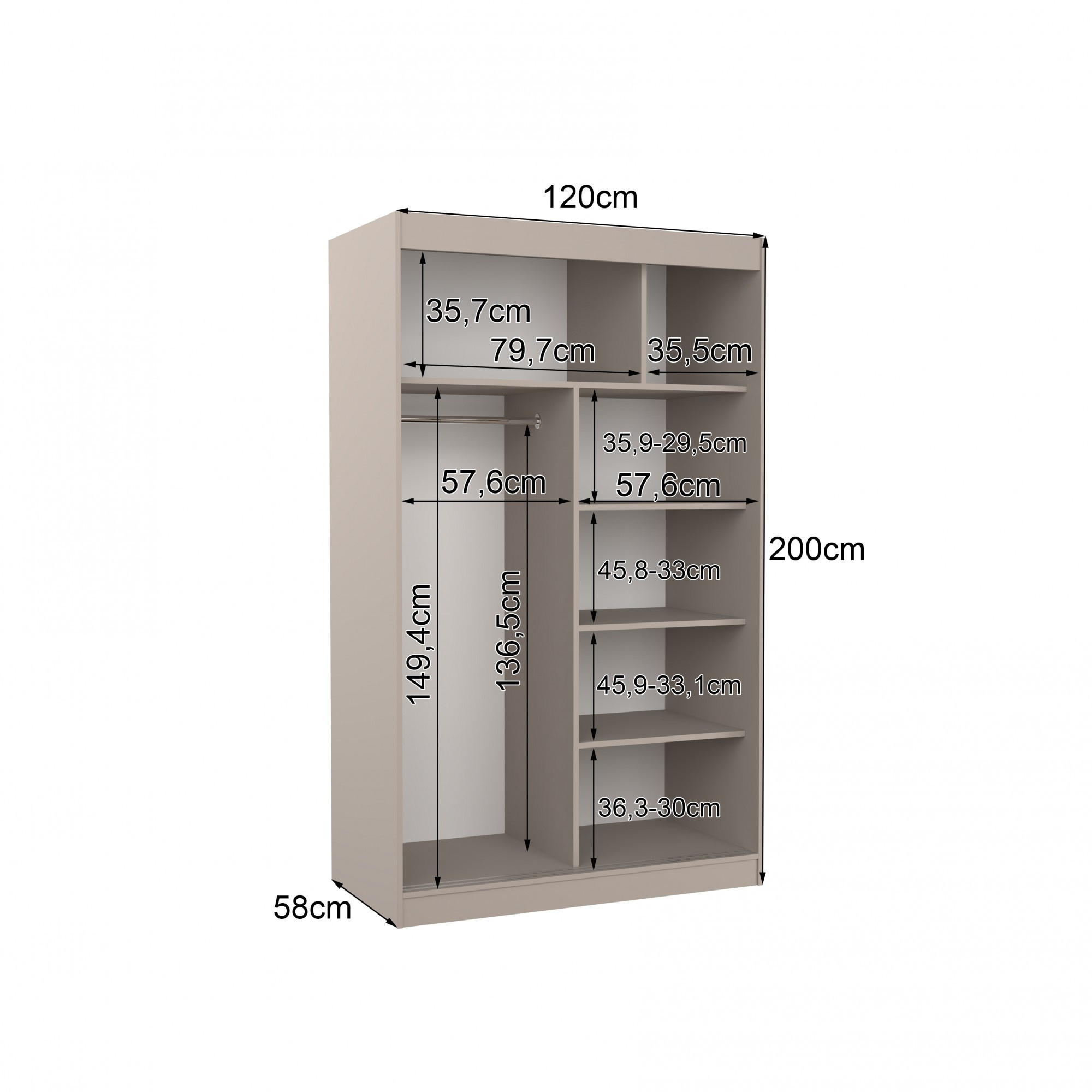 Posuvná skříň se zrcadlem REWENA 120 Kašmír+Kašmír