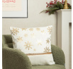 Povlak na polštář Agra byl navržen v minimalistickém stylu. Na světlou látku bylo umístěno několik zlatých sněhových vloček. Kromě toho zlatý pruh ve spodní části odděluje vzorovanou část od spodní části. Barevné schéma činí povlak na polštář mimořádně elegantním.