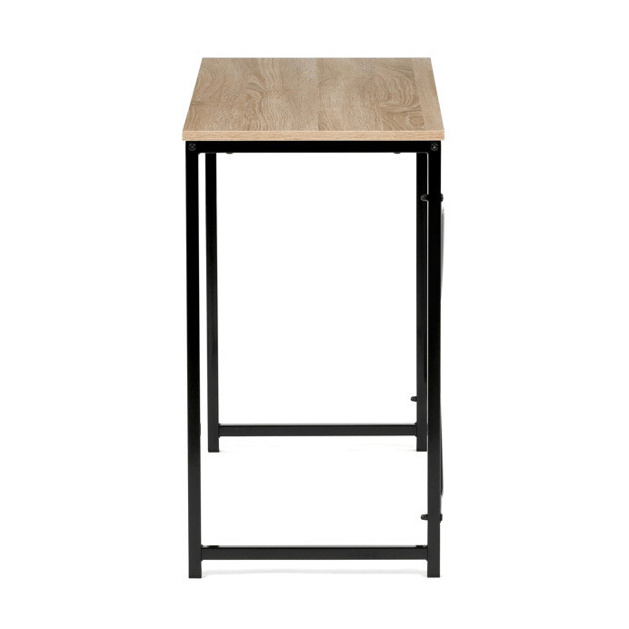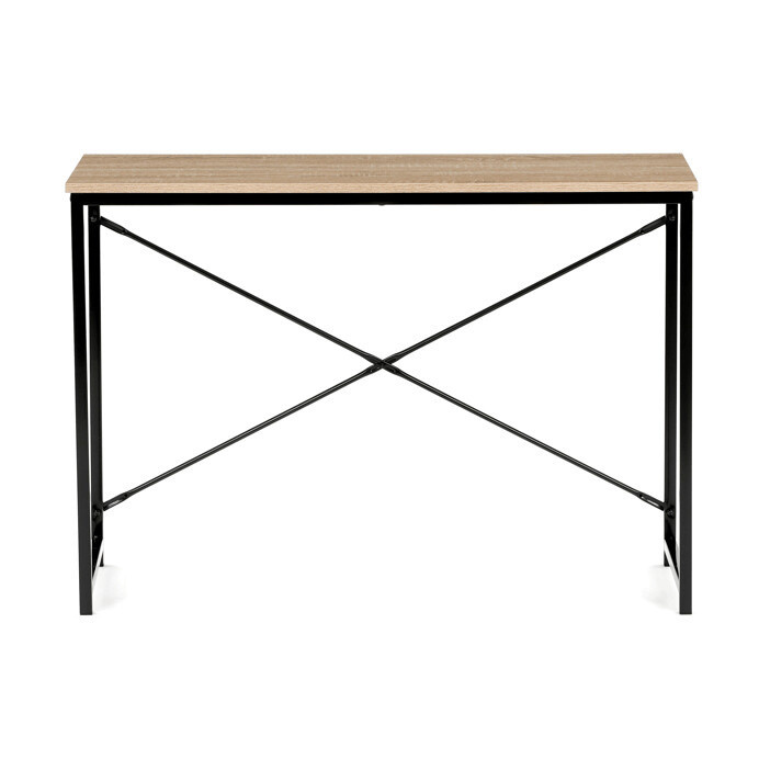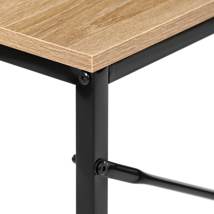 Pracovní stůl GD-504 OAK nabízí praktické řešení pro domácí i kancelářské prostředí. Deska stolu je vyrobena z MDF s dekorativním povrchem v odstínu divokého dubu, který je odolný a snadno se udržuje. Stabilní kovová podnož v černé barvě zajišťuje pevnost a dlouhou životnost celé konstrukce. Kompaktní rozměry 100x40x70 cm umožňují efektivní využití prostoru i v menších místnostech. Celková pevnost a stabilita stolu podporují pohodlnou práci s dostatečným prostorem pro notebook či psací potřeby.