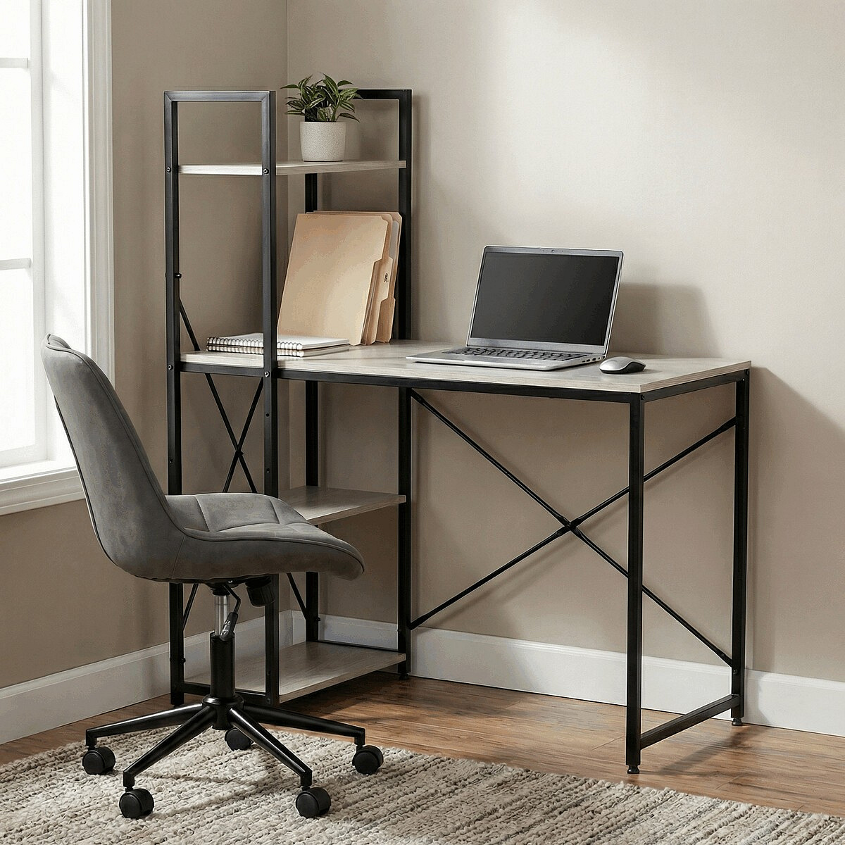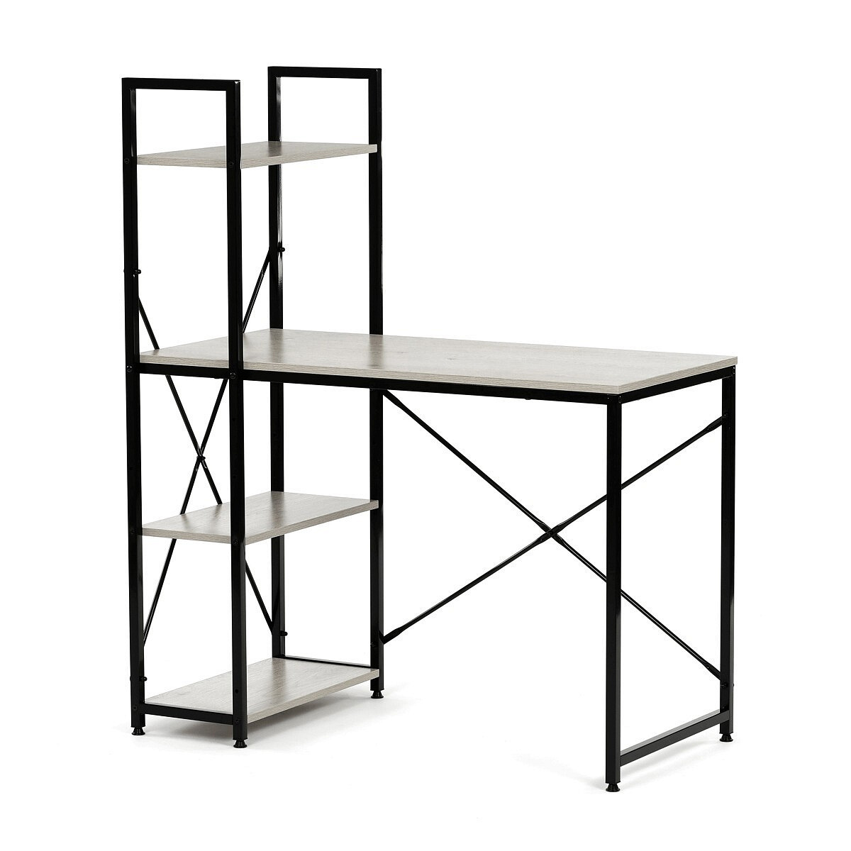 Pracovní stůl značky Autronic v industriálním stylu je skvělou volbou pro moderní kanceláře i domácí pracovny. Kombinace běleného dubu a černé kovové konstrukce vytváří atraktivní a odolný design. Stůl nabízí praktický úložný prostor díky čtyřem přídavným policím, které poskytují dostatek místa pro knihy, dokumenty nebo dekorace. Matná povrchová úprava desky z MDF zajistí snadnou údržbu a elegantní vzhled. Tento funkční a stylový kus nábytku se skvěle hodí do interiéru, kde oceníte praktičnost a moderní vzhled.Rozměr police: 48 x 24,5 cm. Celková výška s policí je 122 cm.