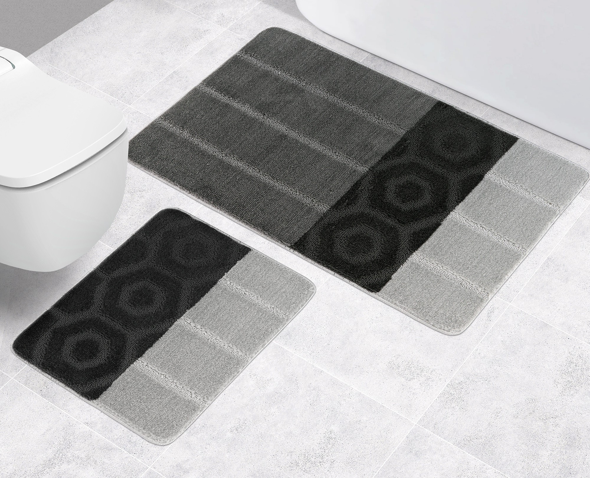 Koupelnové předložky nabízíme v mnoha barevných variacích, rozměr předložky před WC je 60x50cm, předložka je bez výkroje na WC. Možno barevně dokompletovat s předložkou před vanu 60x100cm. Rub předložek je tvořen povrchem z latexového nátěru, předložky nekloužou po koupelnové podlaze.