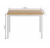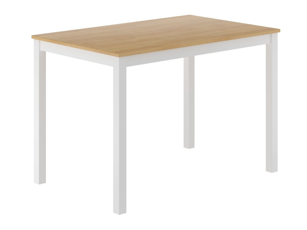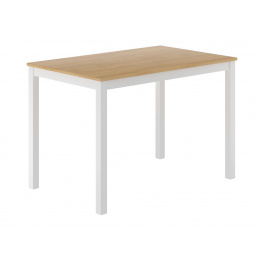 Rozměry: - délka: 110 cm - šířka: 70 cm - výška: 75 cm - tloušťka desky: 1.8 cm - profil nohy: 4.5x4.5 cm Materiál: - kaučukové dřevo Barva: - deska: přírodní dub - základna: bílá