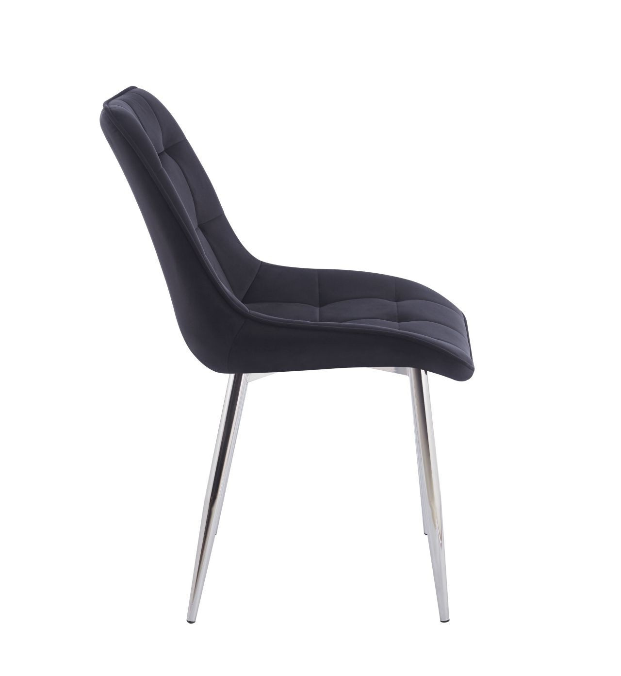 Rozměry: - šířka sedáku: 51 cm - výška sedáku: 49 cm - celková výška: 89 cm - hloubka sedáku: 44 cm Materiál - čalounění: samet Davis Riviera 100 - nohy: chrom Barva: - sedák: černý - nohy: stříbrné