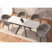 Rozměry: - délka: 120 cm (po rozložení 180 cm) - šířka: 80 cm - výška: 76 cm  Materiál: - deska + vložka: keramika - nohy + rám: kov lakovaný práškovou barvou  Barva: - bílý mramor + černá  Ostatní: - rozkládání: synchronní mechanismus (vysouvání 2 vnějších vložek)