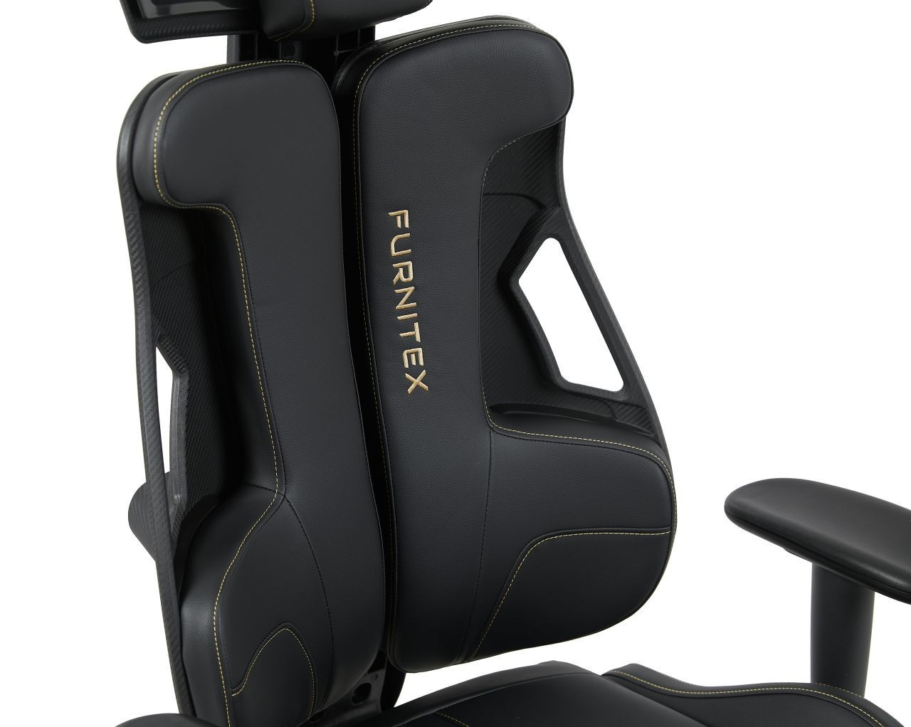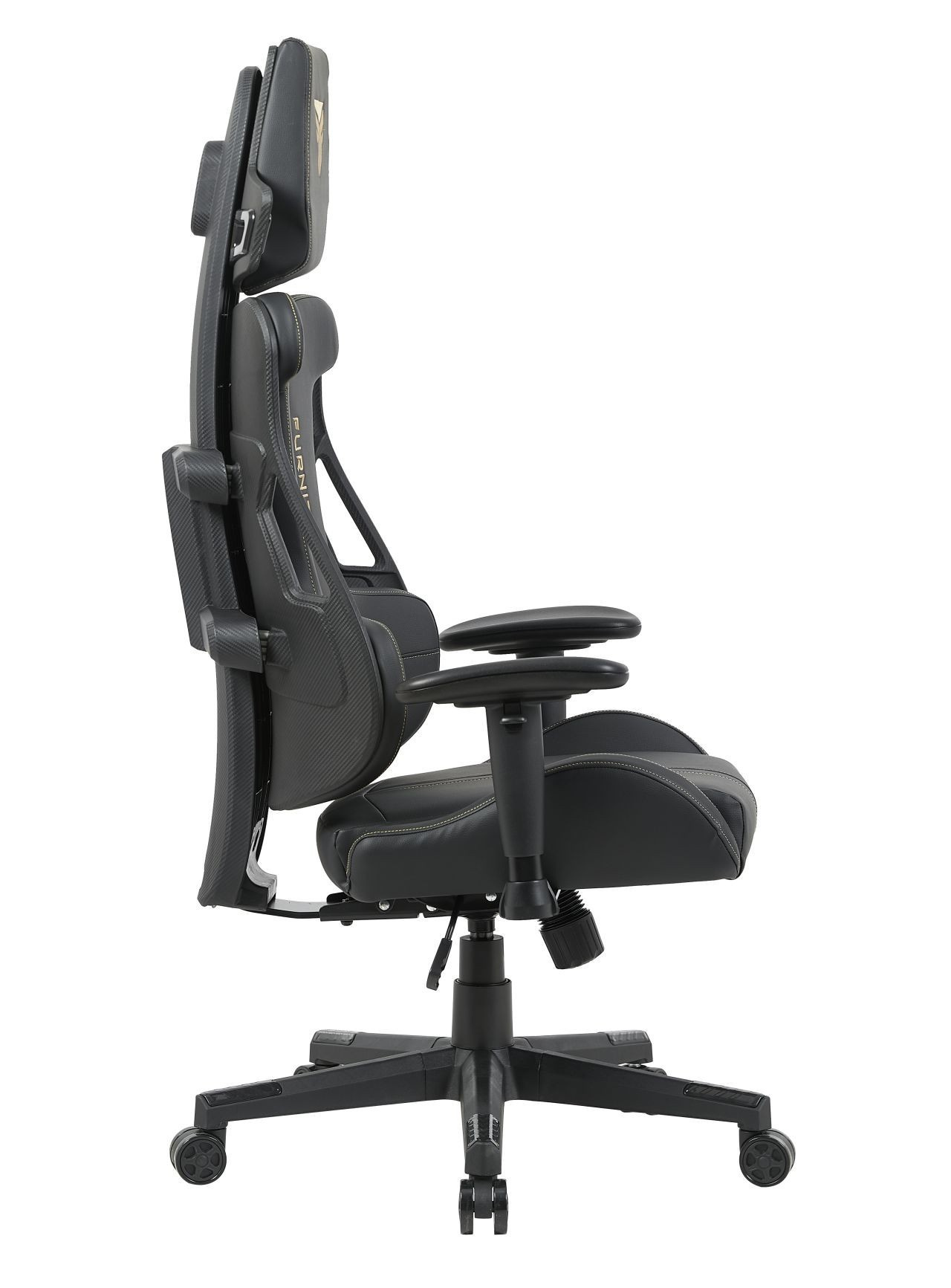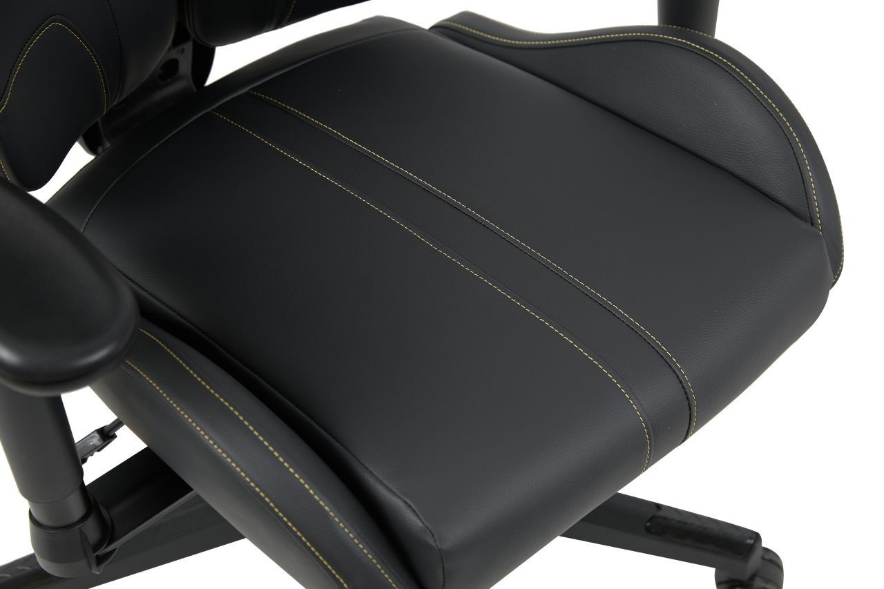FUNKCE: - mechanismus: TILT + sklápěcí opěradlo - područky: nastavitelné Rozměry: - celková šířka: 72 cm - šířka sedáku: 53 cm - hloubka sedáku: 51 cm - celková výška: 129-137 cm - výška sedáku: 45-53 cm Materiál - čalounění: ekokůže - základna: PP plast - píst třídy 4 Barva: - černá se zlatými prvky