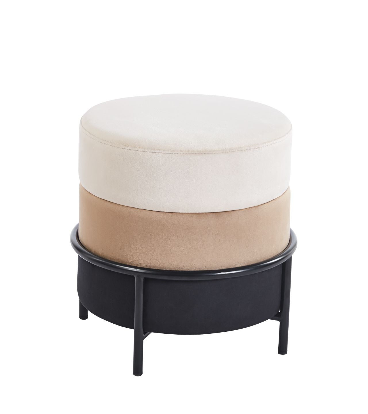 Rozměry: - výška: 40 cm - průměr sedáku: 37 cm - průměr konstrukce: 40 cm Materiál: - čalounění: sametová tkanina - konstrukce: kov s práškovým nástřikem Barva: - sedák: béžová/cappuccino/černá - konstrukce: černá