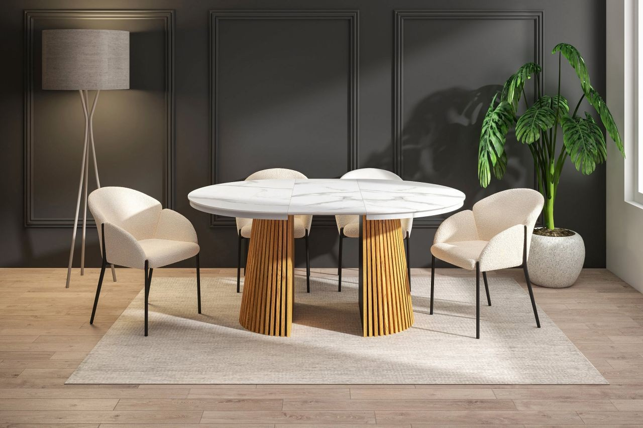 PŘEDPRODEJ -15% do 29.12 ! Rozkládací stůl (bílý mramor/dub) 120(160/200)x120 ST30-FX