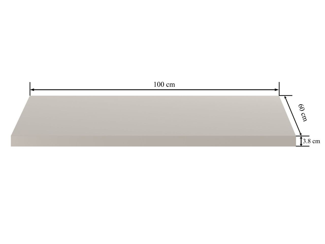 Rozměry: - délka: 100 cm - šířka: 60 cm - tloušťka: 3,8 cm Materiál: - laminovaná deska - hrany: zakončené ABS plastem Barva: - deska: kašmír