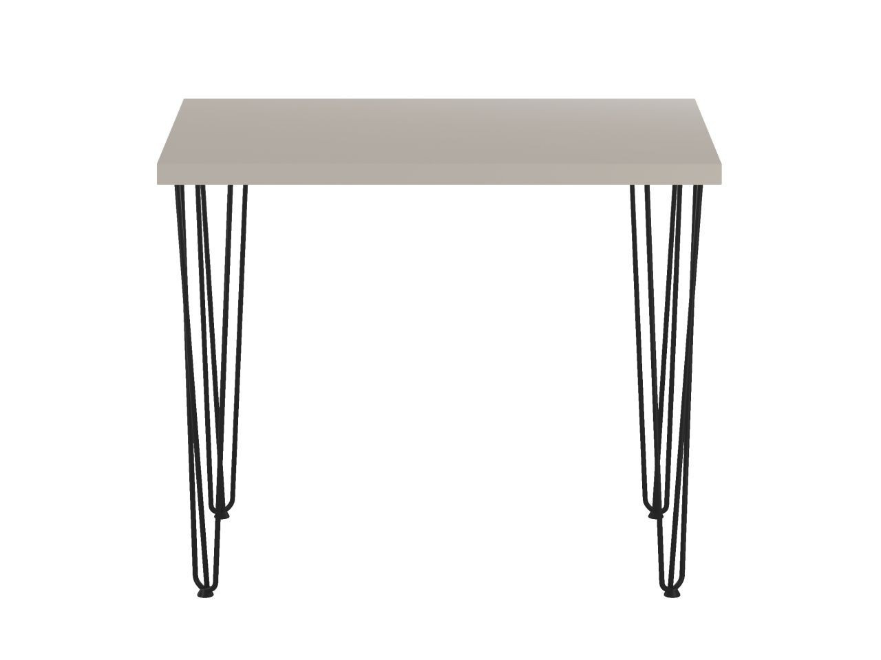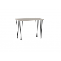 Rozměry: - délka: 100 cm - šířka: 60 cm - výška: 76 cm - tloušťka desky: 3,8 cm Materiál: - deska: laminovaná deska - hrany desky: zakončené ABS plastem - nohy: ocel lakovaná práškovou barvou Barva: - deska: kašmír - nohy: černá