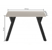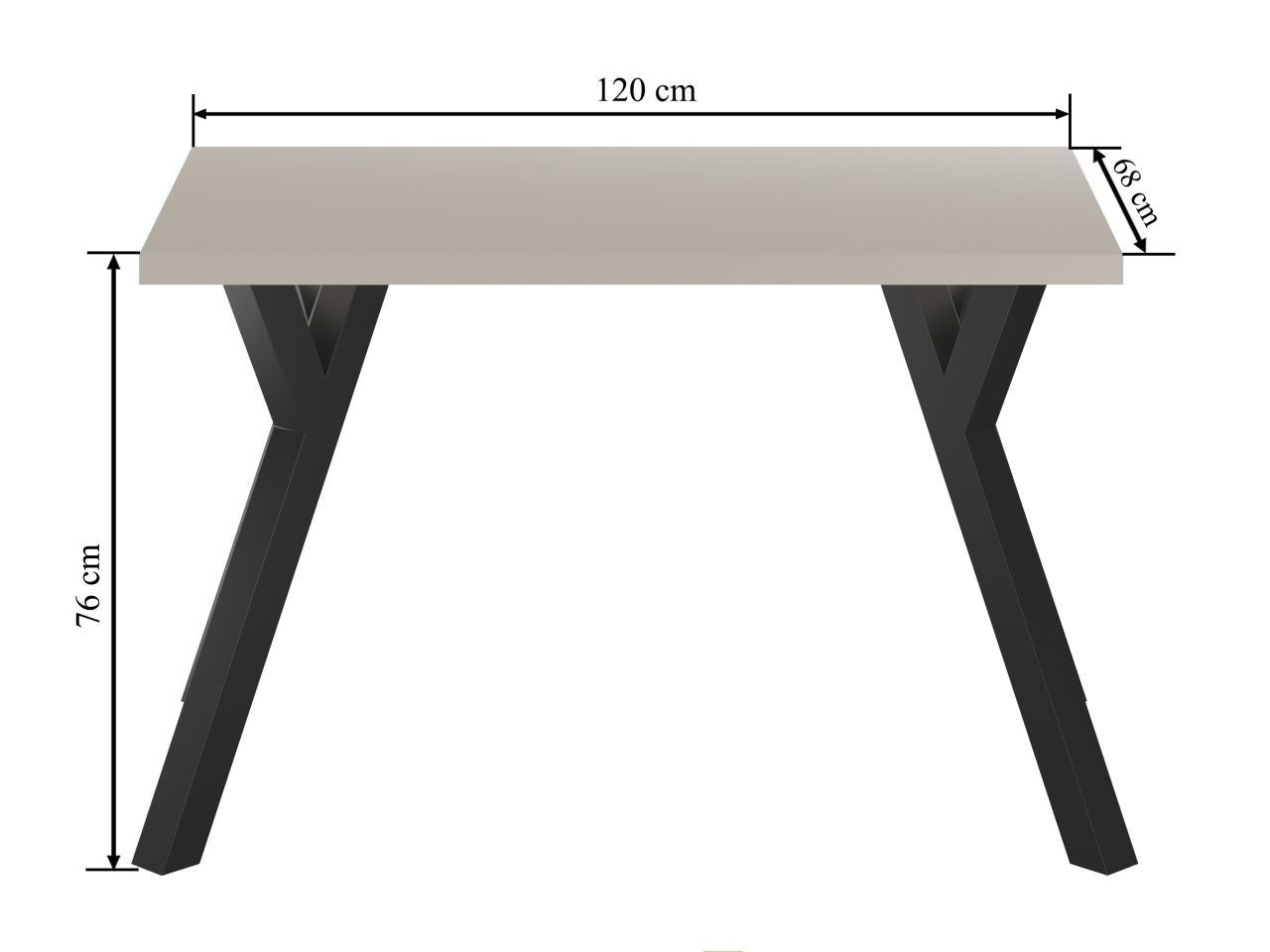 Rozměry: - délka: 120 cm - šířka: 68 cm - výška: 76 cm - tloušťka desky: 3,8 cm - profil nohy: 6x6 cm Materiál: - deska: laminovaná deska - hrany desky: zakončené ABS plastem - noha: ocel lakovaná práškovou barvou Barva: - deska: kašmír - noha: černá
