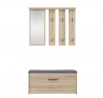 Nadčasová předsíňová sestava Pargas splní očekávání všech, kteří oceňují kombinaci elegance a praktičnosti. Skvěle zapadne do interiérů s minimalistickým či skandinávským charakterem. Sestava se skládá z věšáku se zrcadlem a pohodlného botníku s čalouněným sedákem s výklopnými dvířky. Je vyroben z kvalitního lamina, které je snadno udržovatelné a odolné proti oděru, dlouhou životnost nábytku zajišťují hrany zakončené ABS materiálem.