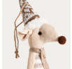 Přívěsek MOUZE je útulná vánoční dekorace, která přinese do vašeho interiéru atmosféru zimní, domácí pohody. Roztomilá myš je oblečena v pleteném pruhovaném svetru v přírodní, tlumené barevné škále béžové a hnědé. Její stylizace je dokončena jemným, pleteným šátkem a vysokým kloboukem. Použití chlupatých a pletených prvků ji činí obzvláště okouzlující a nápadnou.