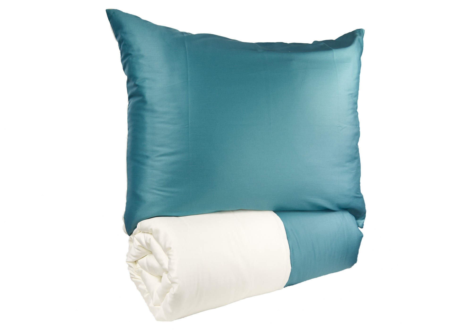 Prodloužené povlečení Satén UNI DUO 140x220, 70x90cm petrol/smetanová