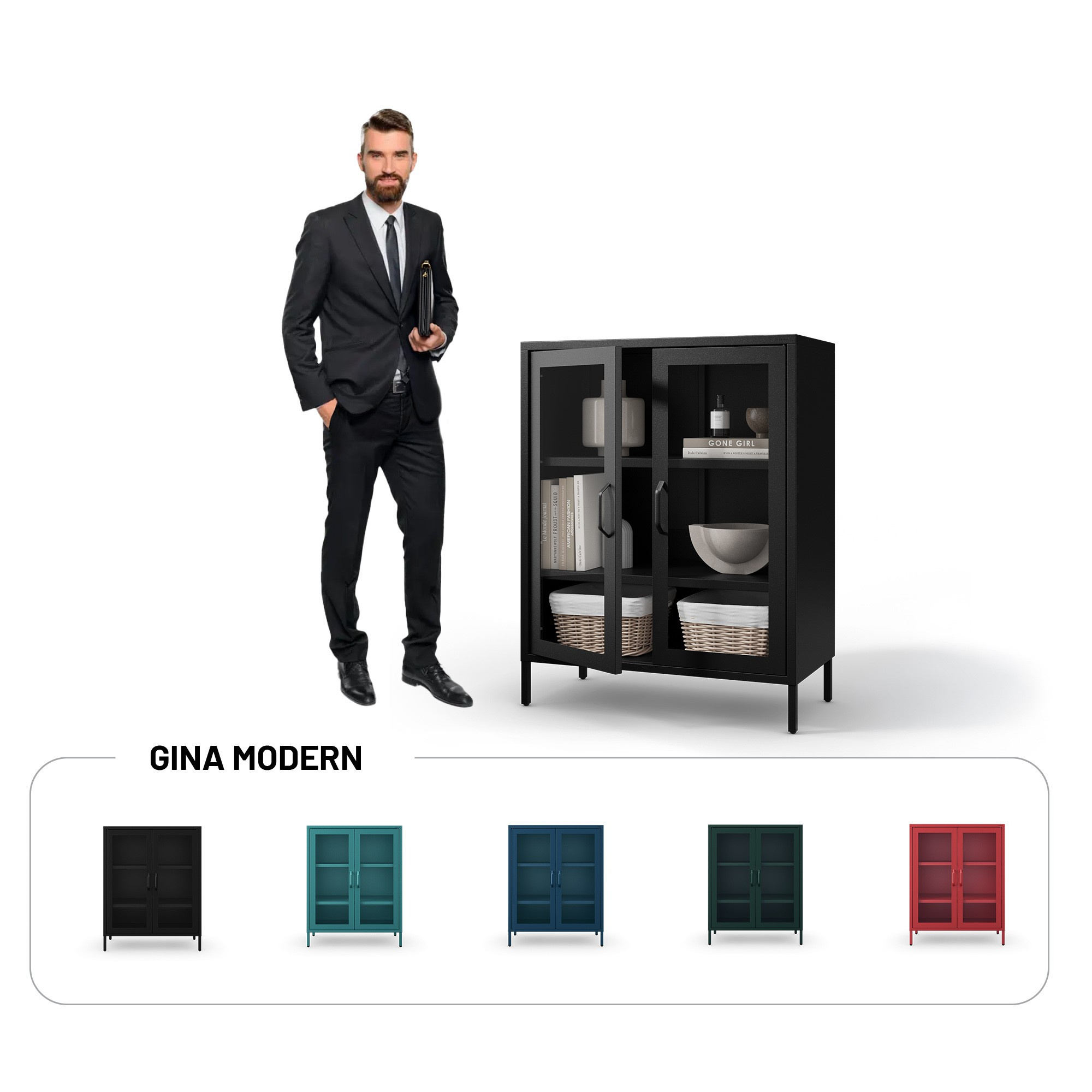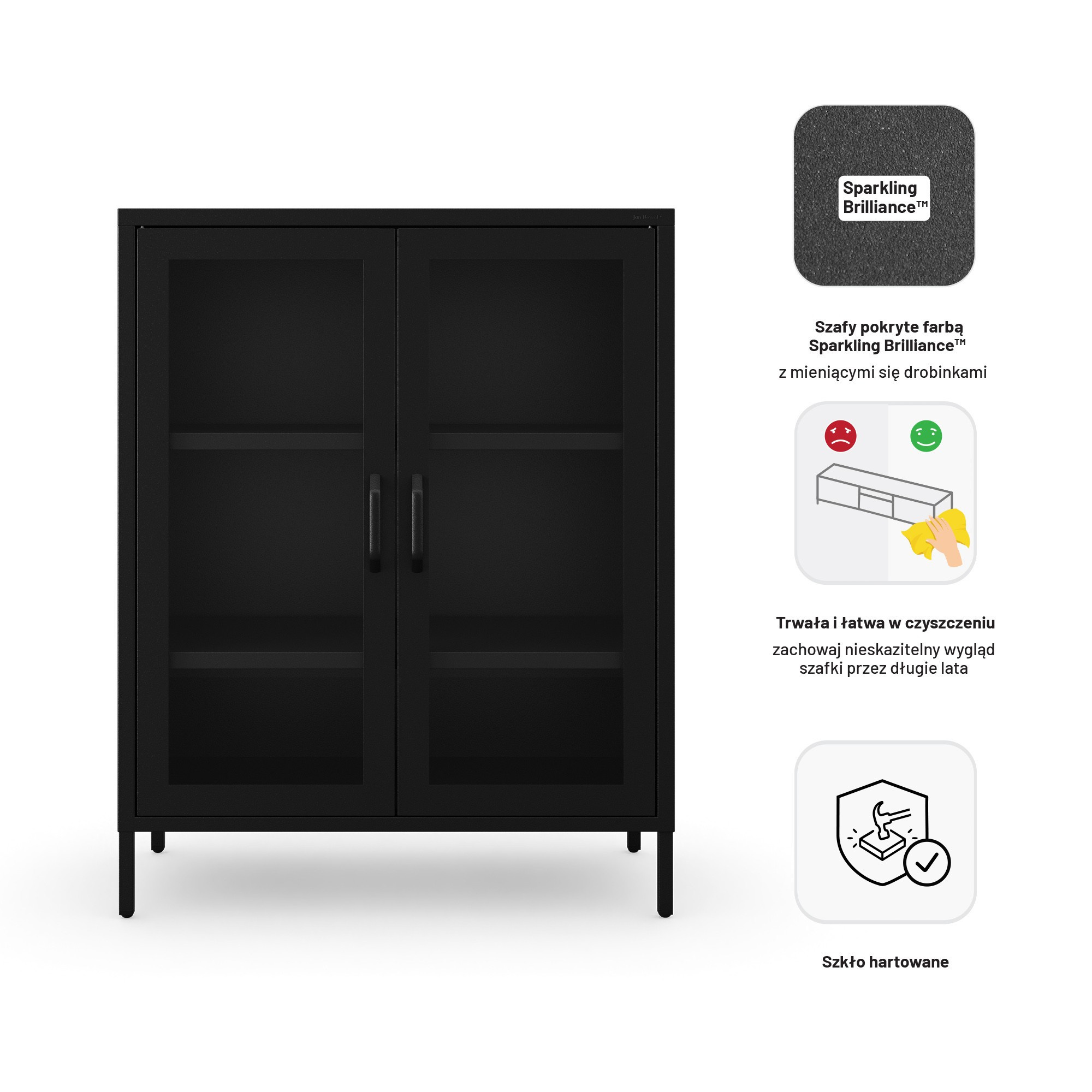 Prosklená nízká černá vitrína: GINA Modern 800 x 1015 x 400 mm