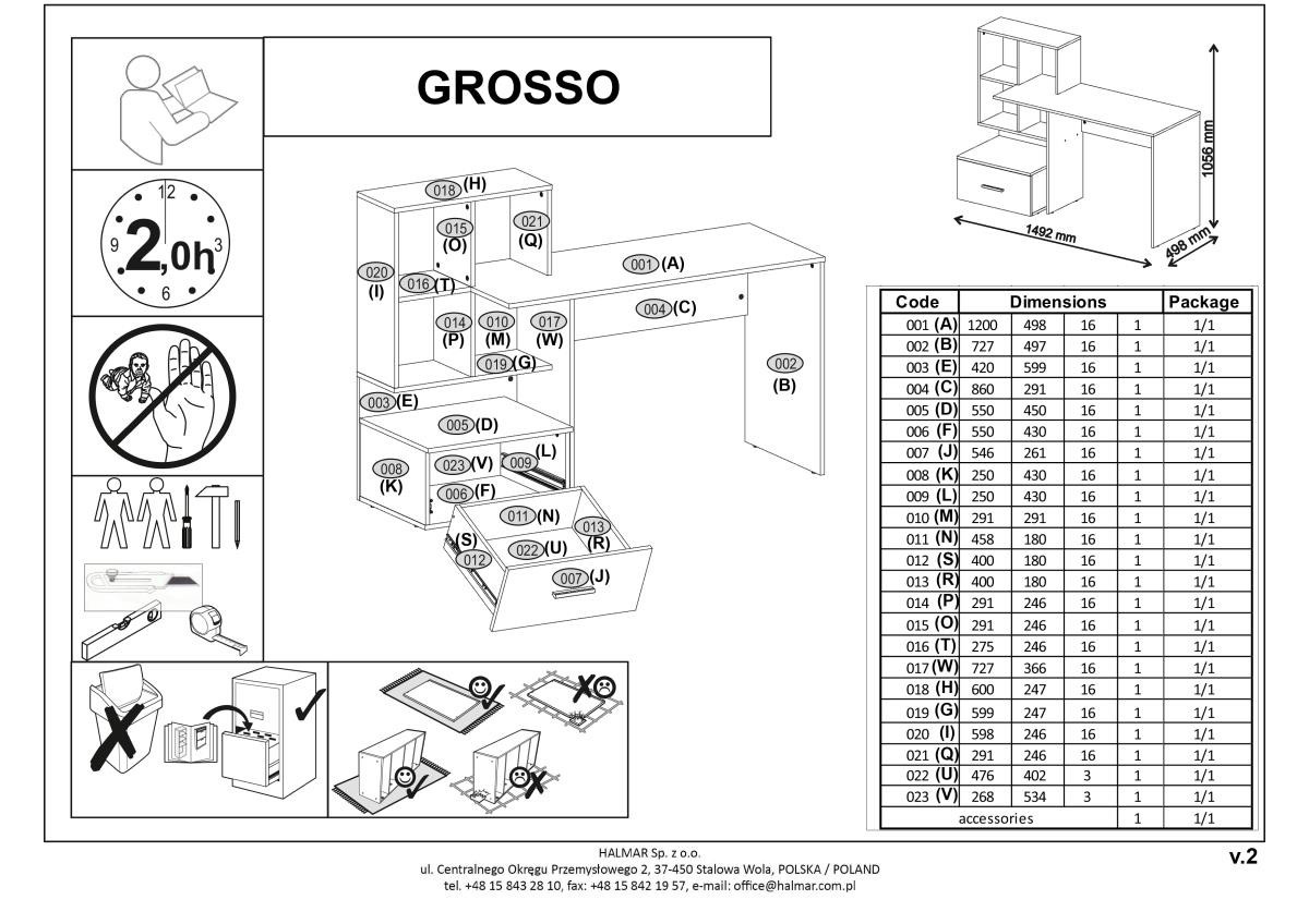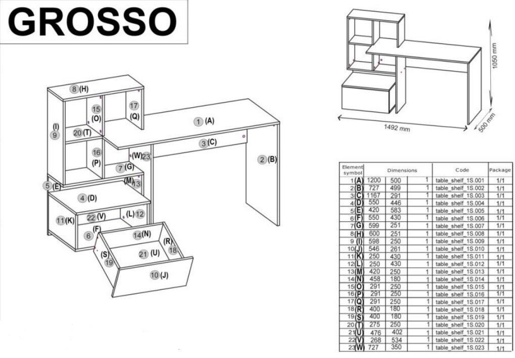 Psací stůl GROSSO je vyroben z lamina. Šuplíky mají vodítka, která Vám umožní plný výsuv šuplíku.