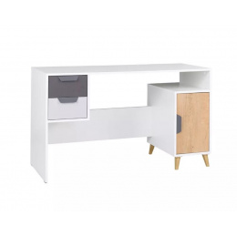 Psací stůl POKER R13, Bílá/Grafit/Dub lefkas/Šedá