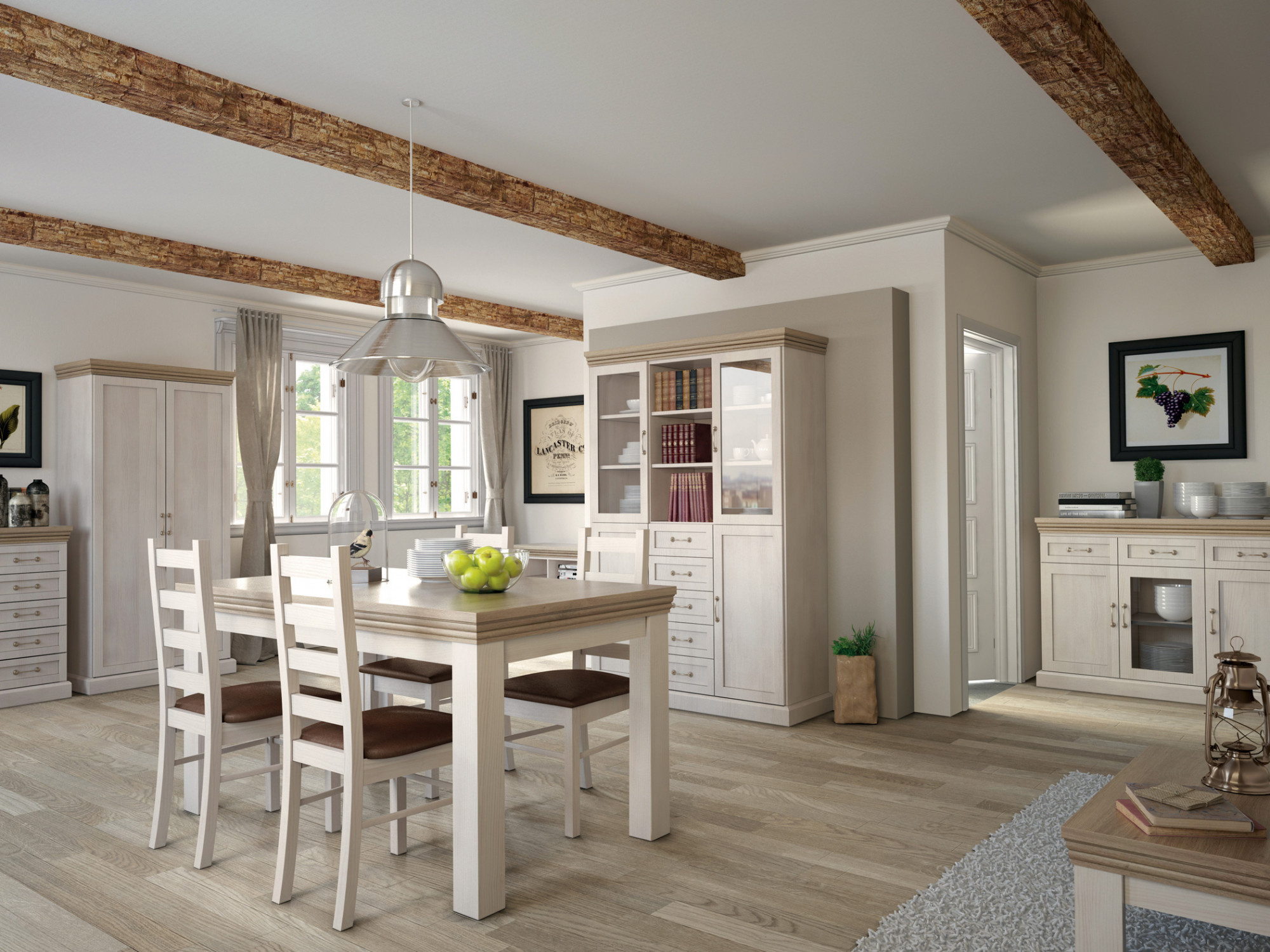 Nábytek ROYAL je vytvořen v anglickém stylu. Sestava nábytku ROYAL vnese do Vašeho domova styl a elegenci. Nábytkem ROYAL si můžete zařídit celý svůj domov - jídelnu, ložnici, obývací pokoj, kuchyň nebo předsíň. Nábytek je vyroben z velmi kvalitní LTD desky v kombinaci s MDF v barevném provedení Borovice nordická (korpus a přední plochy nábytku) s Dubem divokým (horní plochy nábytku). Uchyty jsou kovové.
