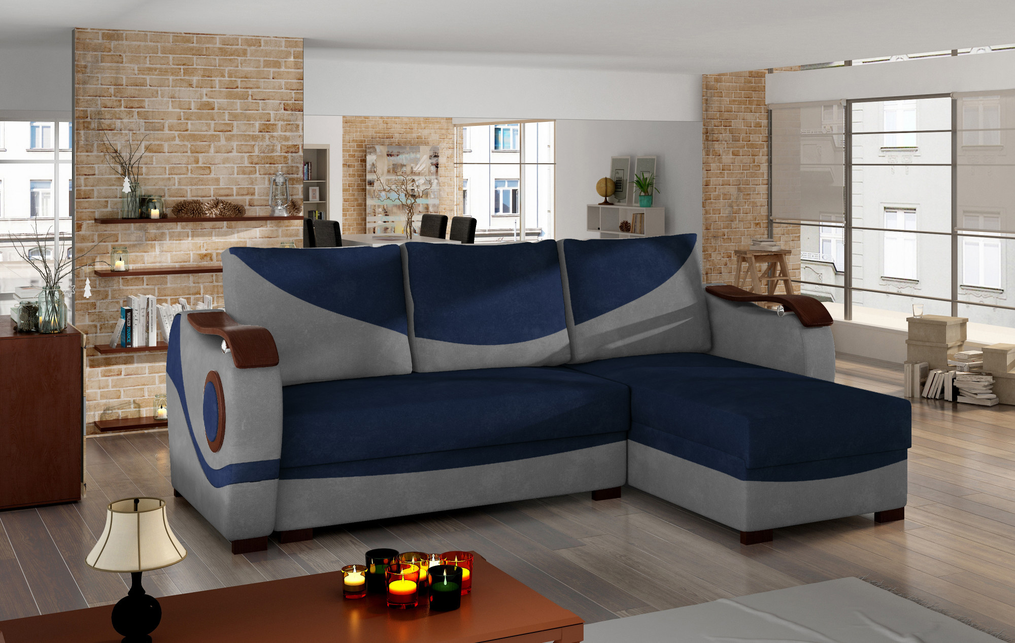 Puerto je sofistikovaná, originální a moderní rohová pohovka pro znalce originálních řešení. Nábytek o rozměrech 235 x 140 x 90 cm zaručuje prostornost a pohodlí při používání během dne, stejně jako maximální komfort a klidný spánek na ploše 195 x 125 cm v noci. Jednoduchý mechanismus rozkládání ve formě výsuvného spodku a sklápěcího opěradla umožňuje rychle přizpůsobit rohovou pohovku aktuálním potřebám. Rohová pohovka má dva prostorné úložné prostory na lůžkoviny - jeden z nich se nachází v otomanu, zatímco druhý je k dispozici po nastavení nábytku do noční funkce. Zážitek z výjimečné měkkosti je možný díky kombinaci bonelových pružin a pěny T25. Je to tato kombinace, která ovlivňuje pocit maximálního potěšení z relaxace, který nabízí náš nábytek. Mezi charakteristické rysy tohoto modelu můžeme určitě zařadit další dekorace ve formě dřevěných prvků na područkách, bocích a nohách - to vše se promítá do originálního tónu celku. Pokud byste chtěli pocítit energii, která proudí z rohu Puerto - doporučujeme vám se na něj podívat zblízka.