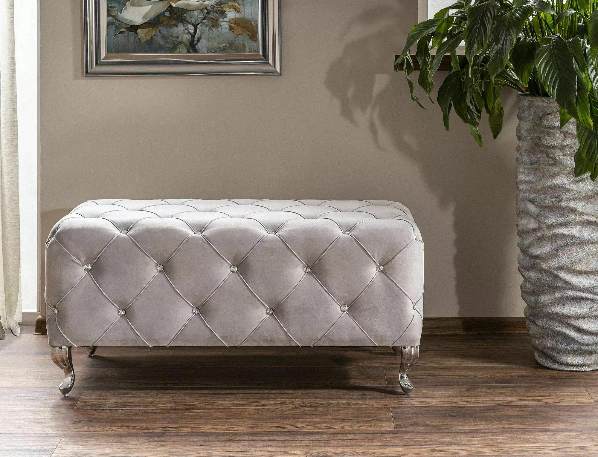Taburet HESTIA, Světle šedý Bluvel 03/Stříbrná