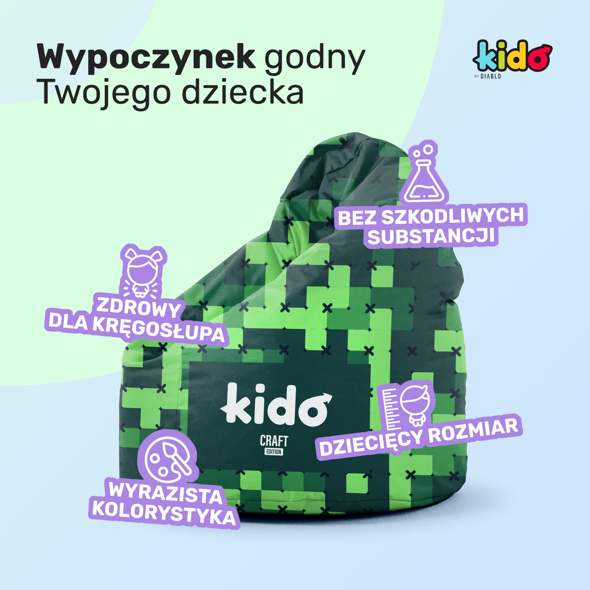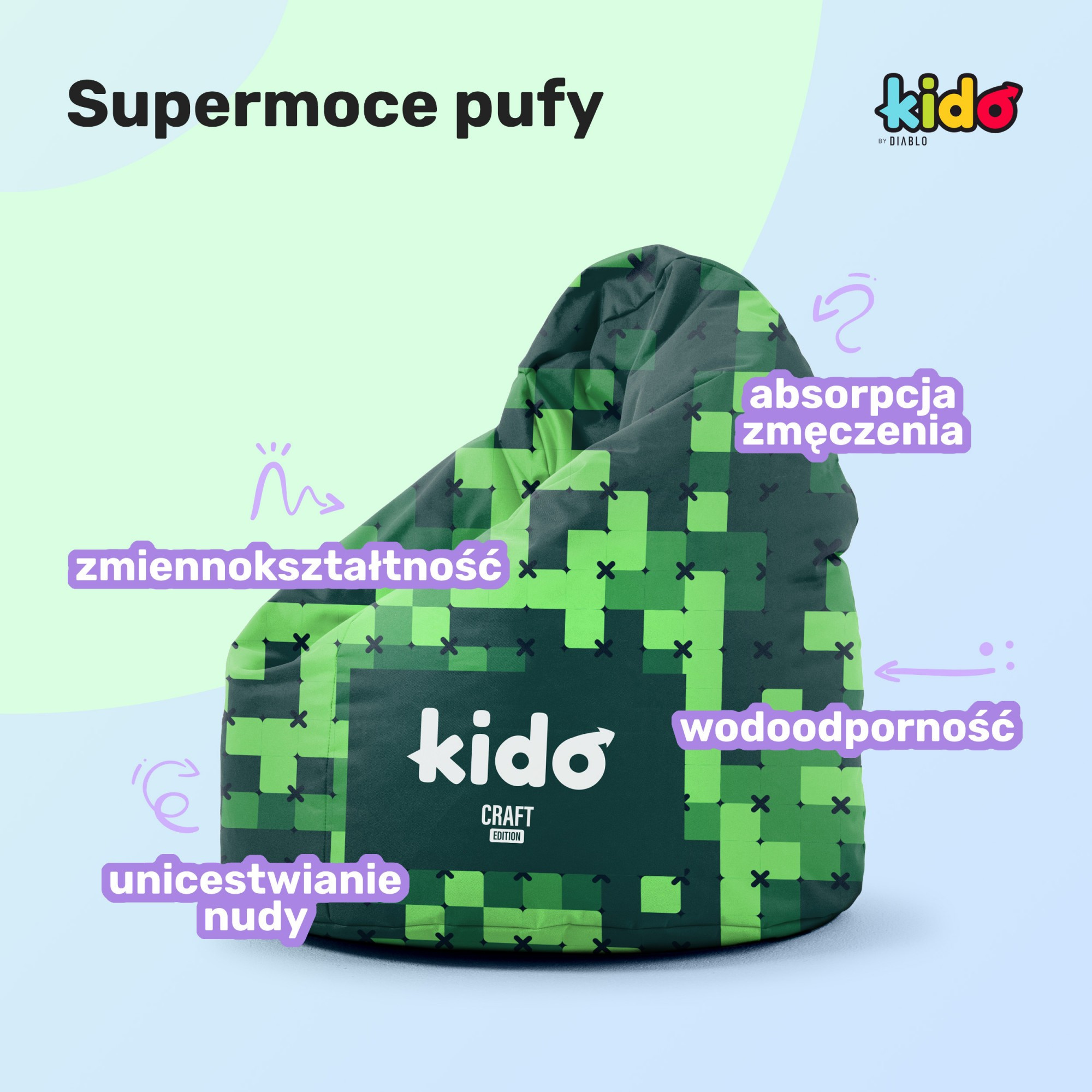 Pufy pro děti Kido by Diablo: Craft Edition Pokud vyberete do dětského pokoje pohodlné sedátko s unikátním vzorem přizpůsobeným zájmům vašeho dítěte, uděláte mu opravdu výjimečný dárek. Pufy pro děti Craft Edition mají v sobě něco zvláštního. Všechno díky jedinečnému, hráčskému potisku. Pufy vyplněné polystyrenovými granulemi jsou skvělé pro nejmenší, protože se starají o správné držení těla. Nezávisle na způsobu sezení poskytují ideální oporu pro tělo. Svět neomezených možností Fenomén snadno tvarovatelných pufů pro děti spočívá v nekonečných možnostech odpočinku. Přizpůsobivé vyplnění uvolňuje kreativitu, povzbuzuje ke hrám a experimentování. Co je nejdůležitější, vždy správně podporuje páteř nejmladších. Pufy pro děti Craft Edition splní i ty nejbláznivější nápady, protože jsme je vyrobili z mimořádně odolného materiálu - kodury. Jejich prodloužená výška vzhledem k základně umožňuje jejich použití také jako polštář na ležení. Polystyrenový granulát je skvělým tepelným izolátorem, takže ani chladná podlaha nebude schopna zkazit chvíli odpočinku vašeho dítěte. Pro milovníky her jsou Pufy pro děti Craft Edition skutečnou lahůdkou pro milovníky her. Na unikátní vzhled sedadla mají vliv čtyři odstíny zelené uzavřené v malých čtvercích, které jsou nepravidelně rozptýleny po celé jeho ploše. Takový autorský vzor Diablo najdeš také na známé herní židli X-One Craft Edition. Stačí sestavit tyto dva kusy nábytku dohromady, abyste vytvořili vysněný komplet a zajistili, že interiér dětského pokoje bude opravdu výjimečný. Taburet Kido by Diablo Craft Edition je výjimečná varianta. Umístili jsme na něj velký nápis Craft Edition a název značky. Z boku najdeš štítek dodávající charakter. Pokud budeš potřebovat doplnit polystyrenový granulát, na spodní straně pufu jsme ukryli otvor určený k tomuto účelu. Pufy pro děti lehké a kompaktní Umožněte dítěti vytvářet vlastní interiérový svět po svém. Pufy pro děti Craft Edition mají kompaktní rozměry (80 cm v průměru a 110 cm na výšku) - vejdou se i do nejmenší místnosti. Navíc jejich hmotnost je pouze 5 kg, takže je snadno přenesou i ti nejmladší. Přizpůsobené rozměry pro malé děti umožňují plnou volnost. Taburet pro děti Craft Edition poslouží jako hlavní prvek čtecího koutku, aby se po chvíli proměnil v další křeslo u stolu pro kamaráda. Nejvyšší úroveň pohodlí Pufy pro děti Craft Edition je ergonomickou alternativou k ušákovým křeslům a židlím k psacímu stolu. Pro nejmladší je nesmírně důležité, aby po několika hodinách sezení ve školní lavici měli možnost odpočívat v jiné poloze. Možností je opravdu mnoho, protože konstrukce sedacího vaku bez rámu poskytuje obrovský prostor pro kreativitu. V takové situaci záleží pouze na kreativitě dítěte. Můžeš být klidný ohledně postoje malého dítěte, protože naše sedadlo se postará nejen o pohodlí, ale také o správnou oporu těla tvého potomka. Vytrvalostní hit! Kromě jedinečného vzoru pufu pro děti má Craft Edition v záloze ještě jeden silný bod. Jsou vyrobeny z vysoce kvalitní polyesterové tkaniny. Kodura se mezi tolika jinými materiály vyznačuje mimořádnou odolností, odolností proti roztržení a oděru. To je teprve začátek jejích výhod. Díky ochranné vrstvě z PVC je voděodolná a snadno se čistí. Nic nebrání tomu, abyste ji v teplé dny vynesli na balkon nebo do zahrady. Tkanina podléhá přísným kontrolám, splňuje požadavky směrnice REACH, proto je zcela bezpečná pro nejmenší. Pufy pro děti vyrobené z takového materiálu jsou snem všech rodičů. Nezávisle na bláznivých nápadech dítěte, křeslo bude stále ve skvělém stavu. Pufy pro děti Kido by Diablo — specifikace Barva: Zelená Materiál: Kodura Výška: 110 cm Šířka: 80 cm Hloubka: 80 cm Hmotnost: 5 kg
