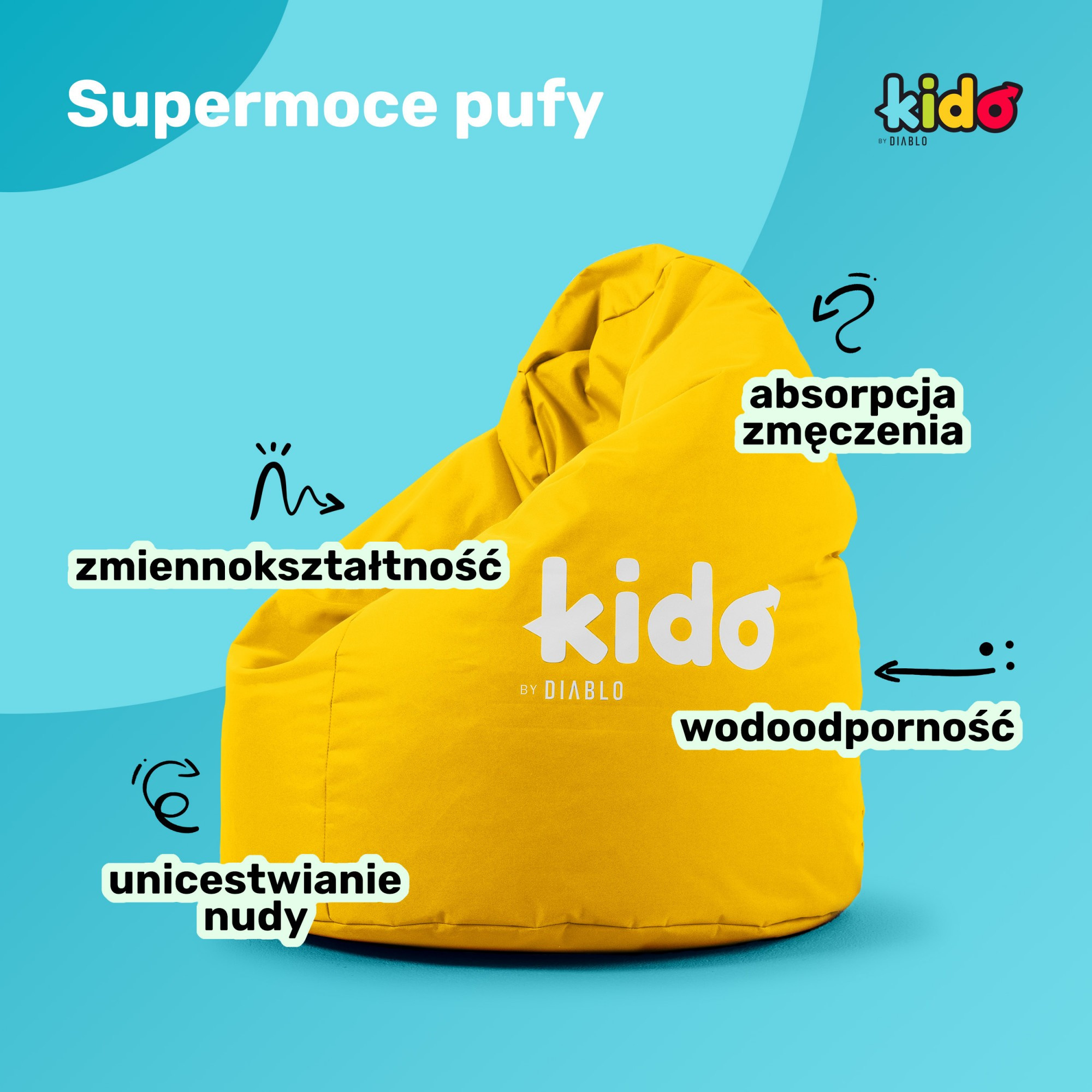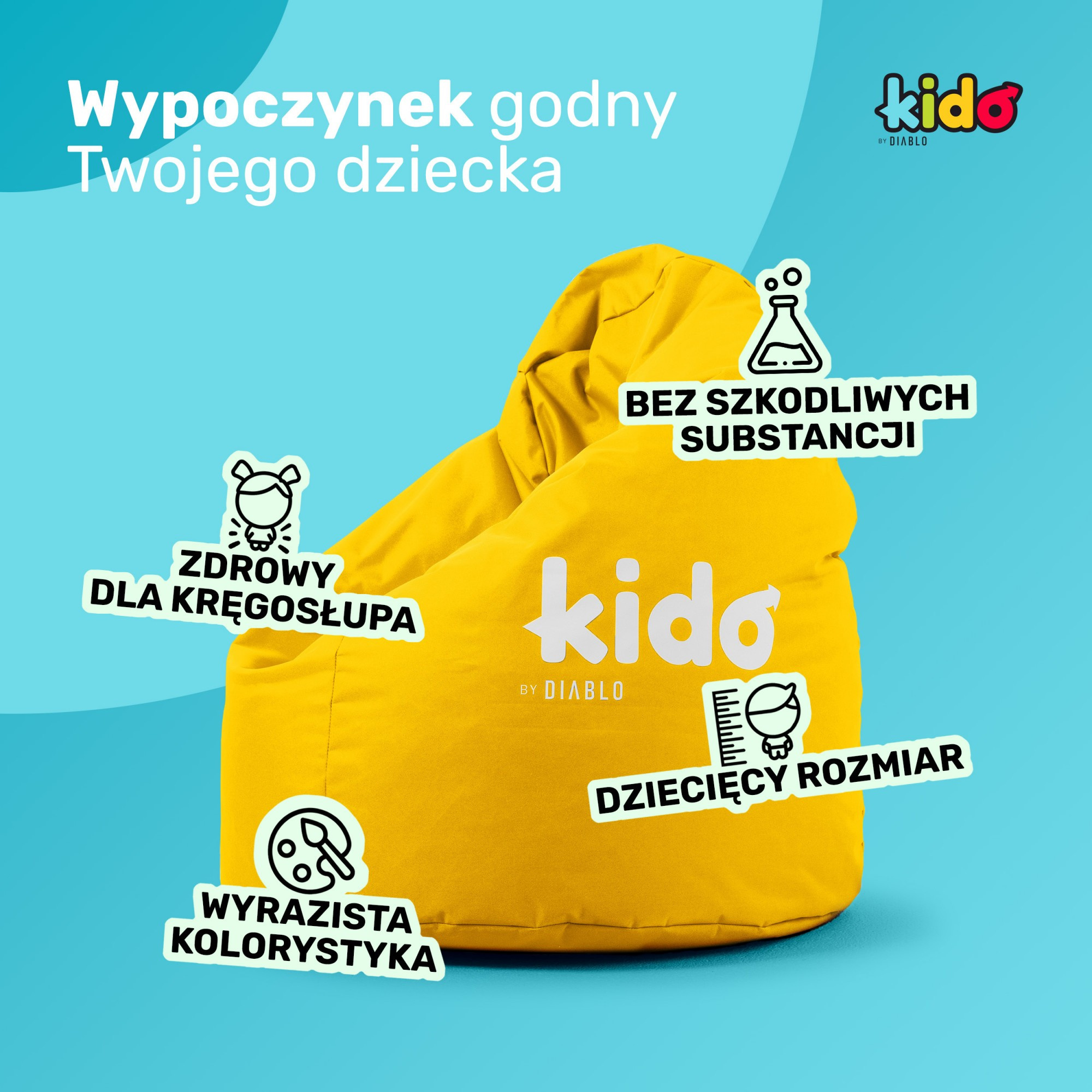 Taburet do dětského pokoje Kido by Diablo: žlutý Pokud hledáte pohodlné sedátko pro vaše dítě, na kterém se bude moci učit, hrát na konzoli, bavit se nebo číst knihu v jakékoliv pozici, pak je Taburet do dětského pokoje Kido by Diablo tou nejlepší volbou. Vytvořená oblíbenou značkou herních křesel jistě splní sny nejmladších. Taburet vak spojuje atraktivní vzhled s maximálním pohodlím. Stojí na výši úkolu Správná podpora těla, a především páteře, je to, co se rodičům na pufu do dětského pokoje Kido by Diablo nejvíce líbí. Nejmladší jsou nadšeni nekonečnými možnostmi sezení, ležení a volného tvarování sedacího vaku. Stačí přidat k tomu odolný proti poškození a voděodolný materiál a výplň, která zajišťuje tepelnou izolaci od chladné podlahy, abyste se přesvědčili, že Taburet do dětského pokoje Kido by Diablo je nejlepší řešení prakticky pro každé dítě. Taburet v slunečném klimatu Barva pufu do dětského pokoje je jeho velkou výhodou. Radostná žlutá dodá interiéru energii a stane se jeho výrazným bodem. Použitá polyesterová tkanina je odolná vůči znečištění a snadno se čistí, takže i při intenzivním používání bude stále vypadat skvěle. Postarali jsme se i o ten nejmenší estetický aspekt. Na pufu pro děti jsme umístili bílý nápis Kido by Diablo a z boku jsme všili štítek s názvem značky. Taburet do dětského pokoje má možnost doplnění granulátu. Určený otvor se nachází na spodní straně a je uzavíratelný na zip. Ideální Taburet do dětského pokoje Rozměry pufu do dětského pokoje Kido by Diablo jsou 80 cm v průměru, 110 cm na výšku a 5 kg hmotnosti. Za těmito záhadnými čísly se skrývají tři významné výhody. Taburet vak není ani příliš velký, ani příliš malý, tedy je ideálně přizpůsoben potřebám dětí. Kompaktní rozměry se osvědčí v malém prostoru, sedadlo si najde své místo v dětském pokoji a určitě neblokuje průchod. Taburet do dětského pokoje je lehký, takže jeho přenášení nebude dělat problémy ani těm nejmladším. Volně budou moci měnit její polohu v závislosti na svém nápadu na odpočinek bez potřeby zapojení rodičů. Recept na pohodlí Neexistuje jiné řešení, které by v každé poloze podpíralo tělo a dbalo na pohodlné a zdravé držení těla. Vše díky speciální výplni. Drobné, polystyrenové kuličky neustále pracují, aby se dokonale přizpůsobily pozici nejmladších. Díky tomu Taburet do dětského pokoje neomezuje způsob sezení, což je případ tradičních křesel nebo židlí. Taková volnost podněcuje kreativitu a především je nesmírně potřebná pro děti, které jsou po většinu času nuceny sedět v jedné, určité pozici. Materiál, který dělá rozdíl Při navrhování pufu do dětského pokoje Kido by Diablo jsme si byli vědomi, že kreativní mysli pro ni najdou tisíce využití. Sedák jsme vyrobili z kodury, vysoce kvalitní polyesterové tkaniny. Ona stojí na stráži dobrého stavu nábytku i při těch nejpodivnějších nápadech na odpočinek. Za zmínku stojí, že materiál splňuje požadavky unijní směrnice REACH, a jednoduše řečeno, je zcela bezpečný pro nejmenší. Navíc je mimořádně odolný proti oděru a roztržení. Díky ochrannému povlaku z PVC je Taburet do dětského pokoje voděodolný a snadno se čistí. S ohledem na všechny tyto aspekty můžeme s hrdostí prohlásit, že Taburet Kido by Diablo je jedním z nejtrvanlivějších řešení na trhu. Taburet vak pro děti Kido by Diablo — specifikace Barva: Žlutá Materiál: Kodura Výška: 110 cm Šířka: 80 cm Hloubka: 80 cm Hmotnost: 5 kg