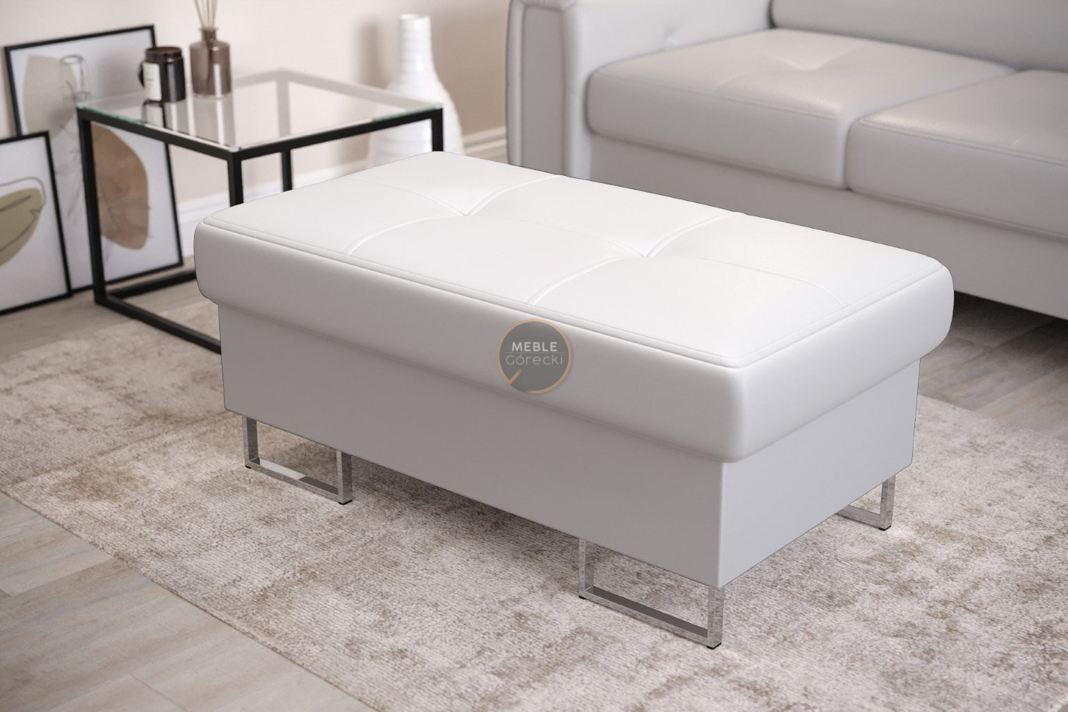 Taburet s úložným prostorem 100x55 cm GALAXY - bílá eko kůže