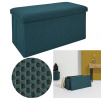 Skládací puf s úložným prostorem je nutností každého studentského bytu nebo pro osoby, které potřebují další místo k sezení a úložný prostor. Puf vyrobený z rámu z odolné MDF desky, která zaručuje maximální přípustné zatížení nábytku až do 110 kg. Puf lze složit, když ji nepoužíváme. Po rozložení nám poskytuje spoustu místa pro uložení jak menších věcí, tak i větších, jako jsou deky, boty nebo knihy. Puf byl ozdoben zajímavou trojrozměrnou tkaninou. Tkanina 100% polyester.