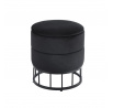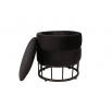 Rozměry: - průměr 37 cm - výška: 40 cm Materiál: - sametová tkanina + práškově lakovaný kov Další: - funkce úložného prostoru Barva: - tkanina: černá - konstrukce: černá