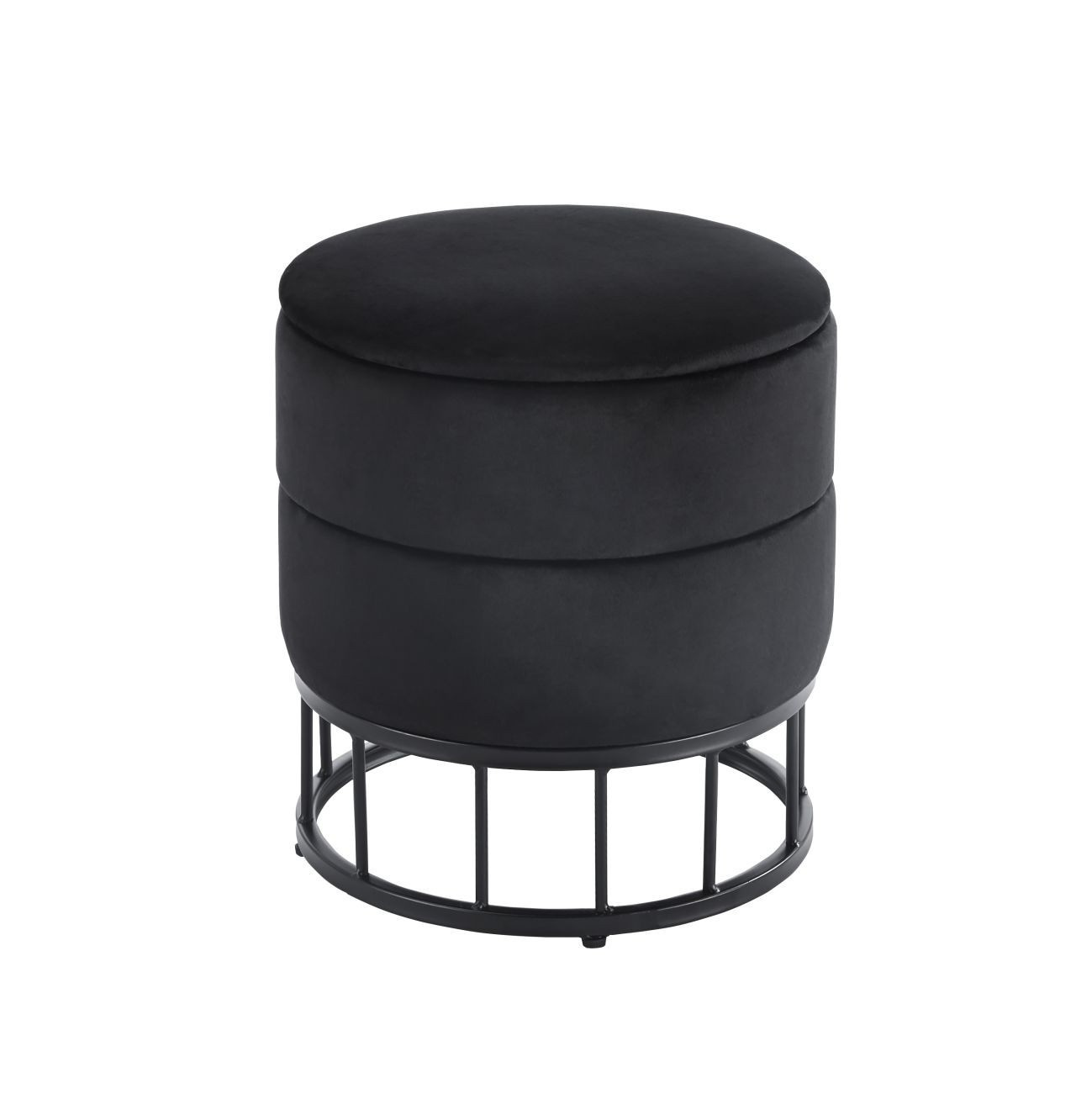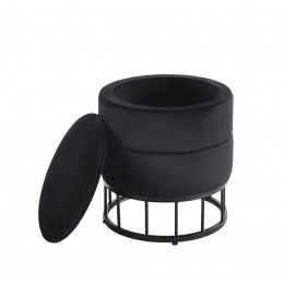 Rozměry: - průměr 37 cm - výška: 40 cm Materiál: - sametová tkanina + práškově lakovaný kov Další: - funkce úložného prostoru Barva: - tkanina: černá - konstrukce: černá