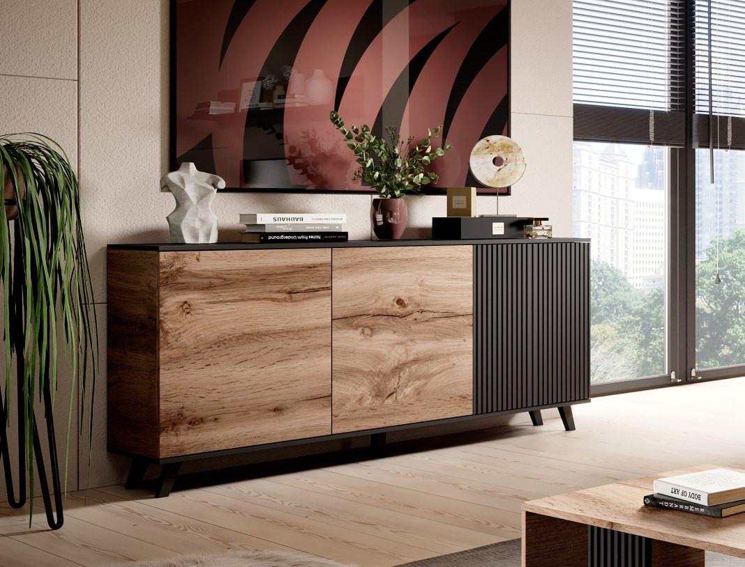 Komoda RANDOM KM-1, dub wotan/černá
