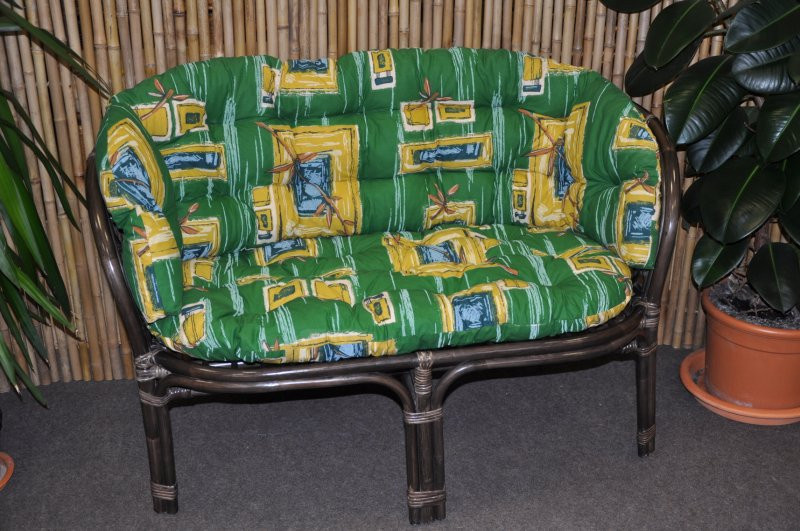 Ratanová lavice Bahama hnědá zelený polstr MAXI
