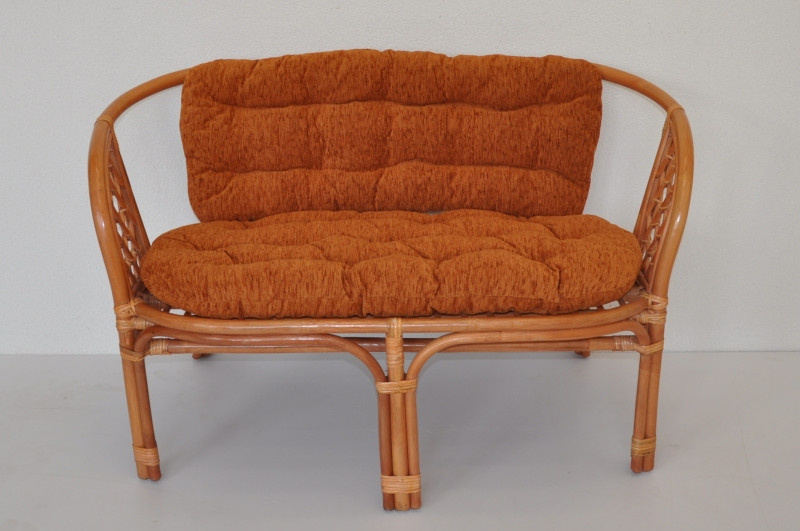 Ratanový nábytek - ratanová lavice pro 2 osoby včetně posltru v barevném provedení dle obrázku | Barva ratanové konstrukce je koňak. Velikost pohovky je 115x66x73 cm. Nosnost pohovky je 150 kg. Polstr je vyrobený v ČR a je pratelný na 40o C.