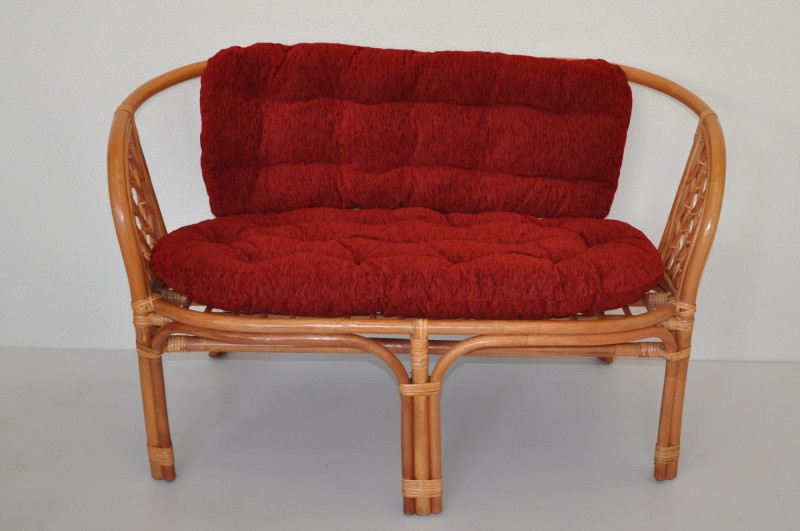 Ratanový nábytek - ratanová lavice pro 2 osoby včetně posltru v barevném provedení dle obrázku | Barva ratanové konstrukce je koňak. Velikost pohovky je 115x66x73 cm. Nosnost pohovky je 150 kg. Polstr je vyrobený v ČR a je pratelný na 40o C.