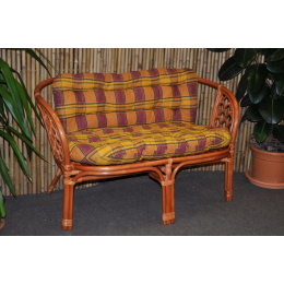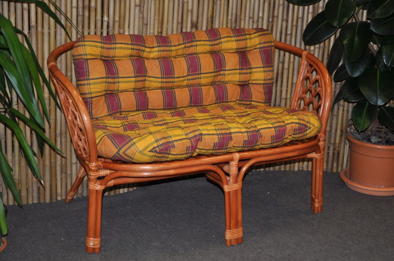 Ratanový nábytek - ratanová lavice pro 2 osoby včetně posltru v barevném provedení dle obrázku | Barva ratanové konstrukce koňak, velikost 115x66x73 cm, nosnost 150 kg, polstr vyrobený v ČR, polstr je pratelný na 40o C