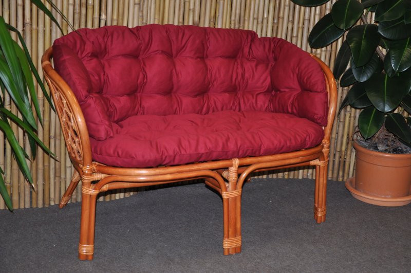 Ratanový nábytek - ratanová lavice pro 2 osoby včetně posltru v barevném provedení dle obrázku | Barva ratanové konstrukce koňak, velikost 115x66x73 cm, nosnost 150 kg, polstr vyrobený v ČR, polstr je pratelný na 40o C