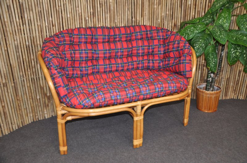 Ratanový nábytek - ratanová lavice pro 2 osoby včetně posltru v barevném provedení dle obrázku | Barva ratanové konstrukce medová, velikost 115x66x73 cm, nosnost 150 kg, polstr vyrobený v ČR, pratelný na 40o C