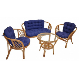 Ratanová sedací souprava Bahama tmavý med velká polstry modrý melír