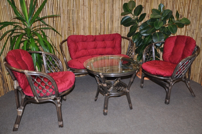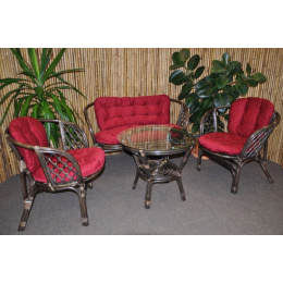 Ratanová sedací souprava Bahama veká hnědá, polstr vínový