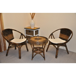 Ratanová sedací souprava vyrobená z přírodního ratanu. Souprava se skládá z jednoho křesla a stolku. | Sedací souprava moon je vyrobena z velice pevného ratanu croco v přírodní barvě Velikost ratanového křesla je 73x65x76 cm Nosnost křesla je 125 kg. Výška sedu křesla je 42 cm Stolek má průměr 55 cm a je 55 cm vysoký Sedací souprava je vyrobena z kvalitního ratanového materiálu. Trojitá konstrukce nohou židlí zajišťuje vysokou pevnost konstrukce. Křesílka jsou vyplétána ručně a kvalita i tvar ratanového výpletu zaručují velice pohodlné sezení.