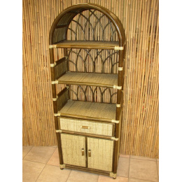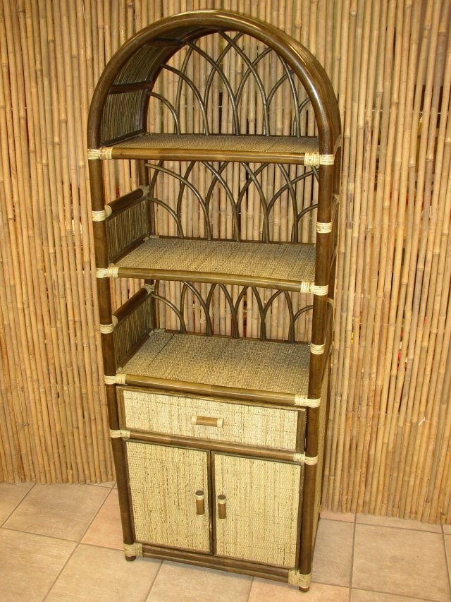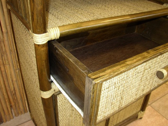 Ratanový nábytek - ratanová skříňka s dřevěnou zásuvkou a dvířky s ratanovým dekorem, rozměr výrobku 60x36x161 cm | Na výrobku jsou vzhledové vady, které nebrání používání. Konkrétně je nedokonalý nátěr uvniř polic.