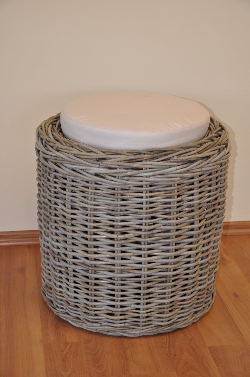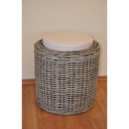 Ratanová taburetka vyrobená z přírodního ratanu s výpletem z ratanu kubu v přírodní šedé barvě. | Velikost taburetky je: průměr 45 cm, výška 45 cm Nosnost taburetky je 125 kg