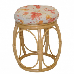 Ratanová taburetka široká medová polstr motiv květiny