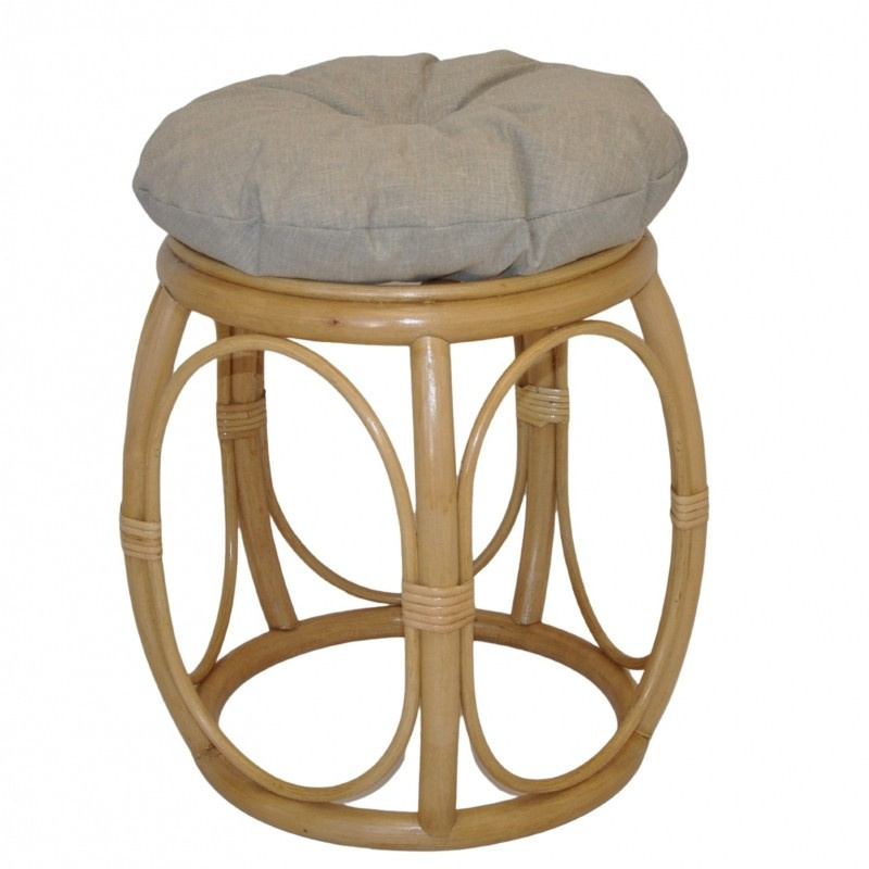 Ratanový nábytek - ratanová taburetka s polstrem. | Průměr taburetky v horní části je 35 cm. Výška taberetky je 38 cm. Nosnost taburetky je 110 kg. Barva ratanové konstrukce je medová. Polstr je vyrobený v České republice a je pratelný na 40oC. Materiál polstru je 100% bavlna, výplň polstru je drcený molitan.