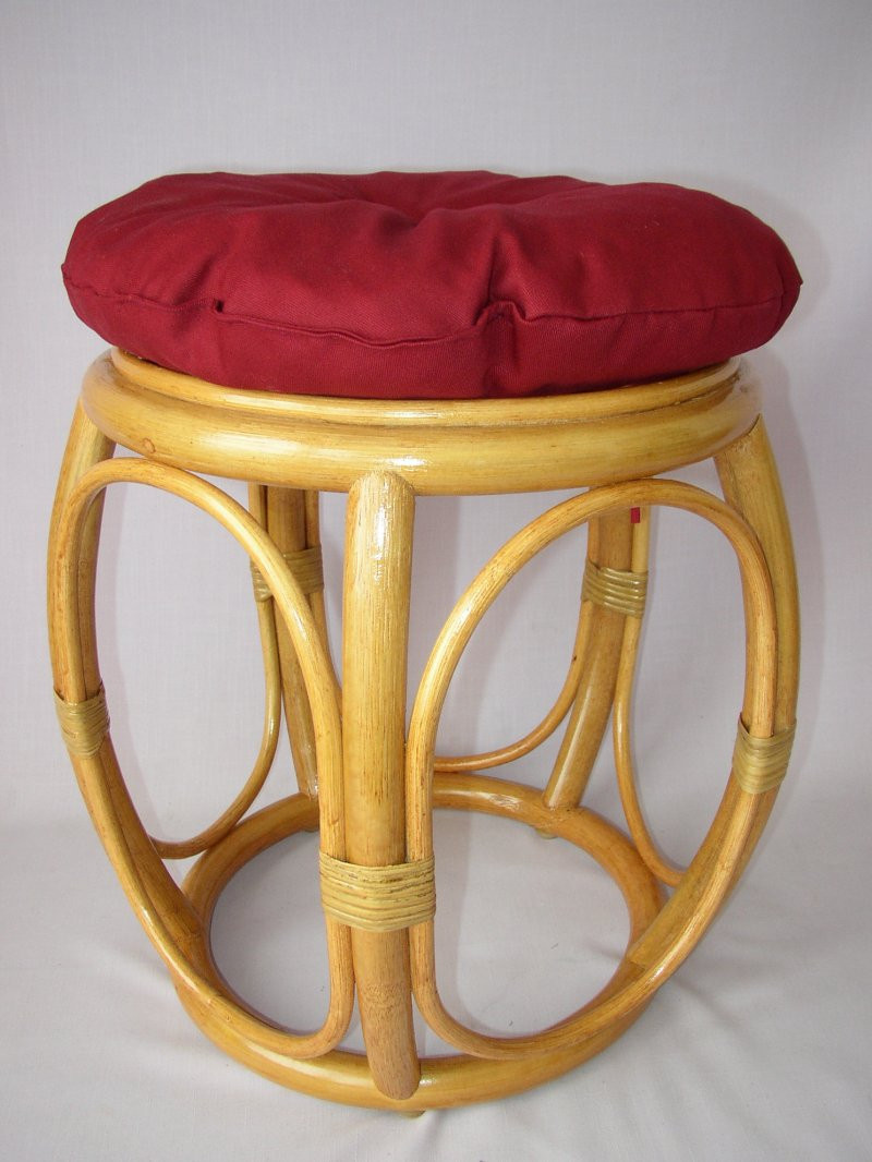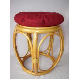 Ratanový nábytek - ratanová taburetka s polstrem | Průměr 35 cm, výška 38 cm. Nosnost taburetky je 110 kg. Barva ratanové konstrukce je medová. Polstr je vyrobený v České republice a je pratelný na 40oC. Materiál polstru je 100% bavlna, výplň polstru je drcený molitan.