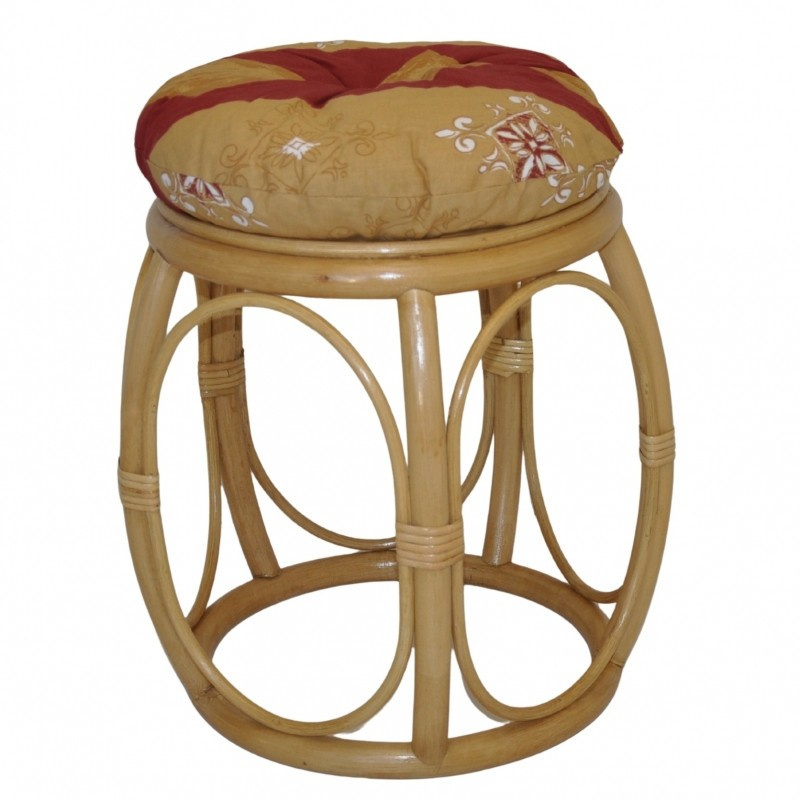 Ratanový nábytek - ratanová taburetka s polstrem | Průměr 35 cm, výška 38 cm. Nosnost taburetky je 110 kg. Barva ratanové konstrukce je medová. Polstr je vyrobený v České republice a je pratelný na 40oC. Materiál polstru je 100% bavlna, výplň polstru je drcený molitan.