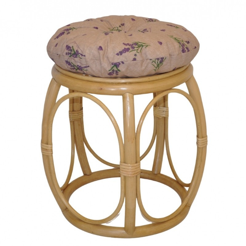 Ratanový nábytek - ratanová taburetka s polstrem | Průměr 35 cm, výška 38 cm. Nosnost taburetky je 110 kg. Barva ratanové konstrukce je medová. Polstr je vyrobený v České republice a je pratelný na 40oC. Materiál polstru je 100% bavlna, výplň polstru je drcený molitan.