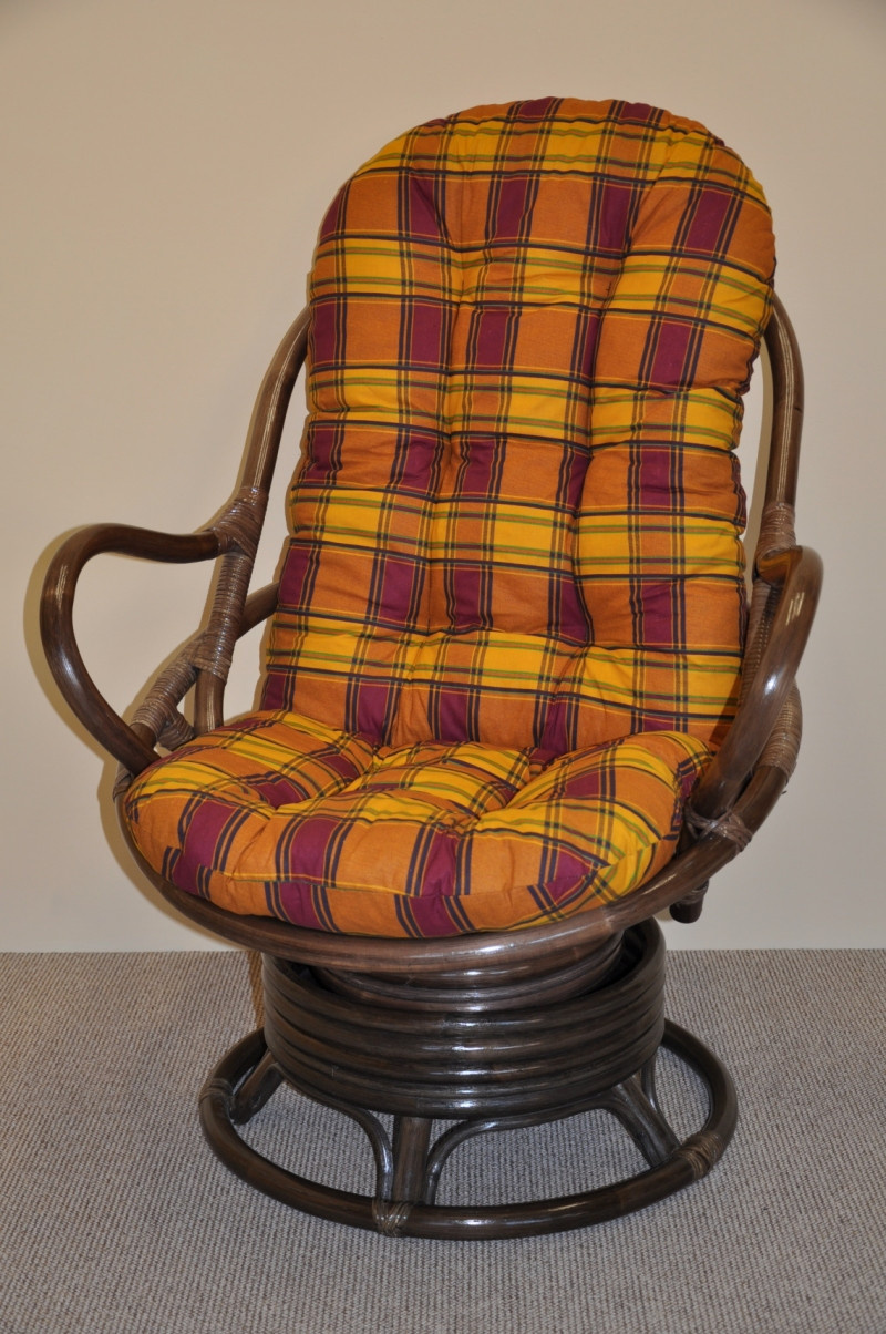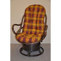 Ratanové houpací křeslo je vyrobeno z přírodního ratanu v barevném provedení konstrukce hnědé a polstru dle obrázku. | Velikost ratanového křesla je 77x87x95 cm, nosnost 110kg. Kovový díl se čtyřmi pružinami zajišťuje pohodlné houpání a možnost otáčení křesla o 360 stupňů. Houpání a otáčení je možné provádět současně.