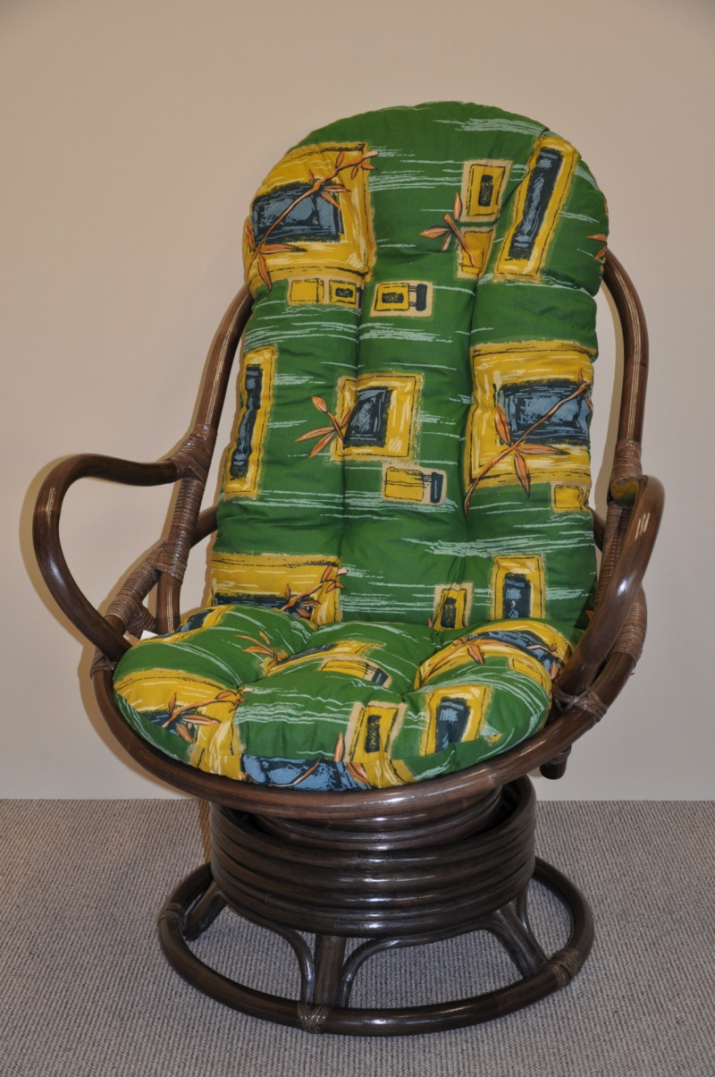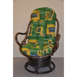 Ratanové houpací křeslo Swivel Helsinky hnědé polstr zelený