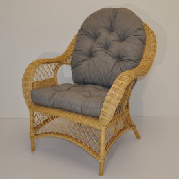Nádherné ratanové křeslo vyrobené z přírodního ratanu s kostrou z masivních ratanový tyčí a výpletem z ratanových proutků. | Křeslo je díky propracované a příjemně tvarované konstrukci velice pohodlné. Barva ratanové konstrukce i ratanového výpletu je medová. Velikost křesla Florida je 76x80x97 cm, nosnost křesla je 130 kg a výška sedu je 45 cm. Polstry z kvalitní potahové látky jsou vyrobeny v České republice.