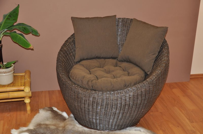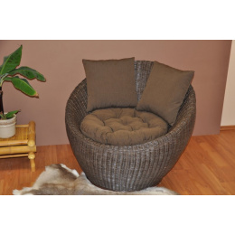 Nádherné ratanové křeslo s konstrukcí z masivních tyčí z přírodního ratanu. Výplet je tvořen ratanovými proutky o průměru cca 3 mm. | Barva ratanové konstrukce i výpletu je hnědá. Velikost křesla je 95x95x79 cm, nosnost křesla je 125 kg Polstry na ratanové křeslo jsou vyrobeny v České republice.